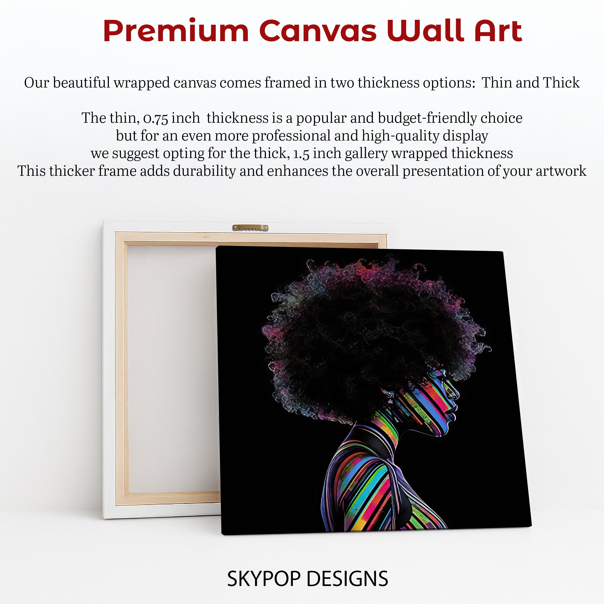 • Thick Canvas — 1.5" deep: gallery-wrapped edges for serious wow.