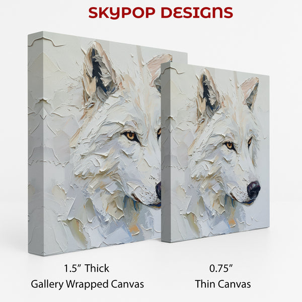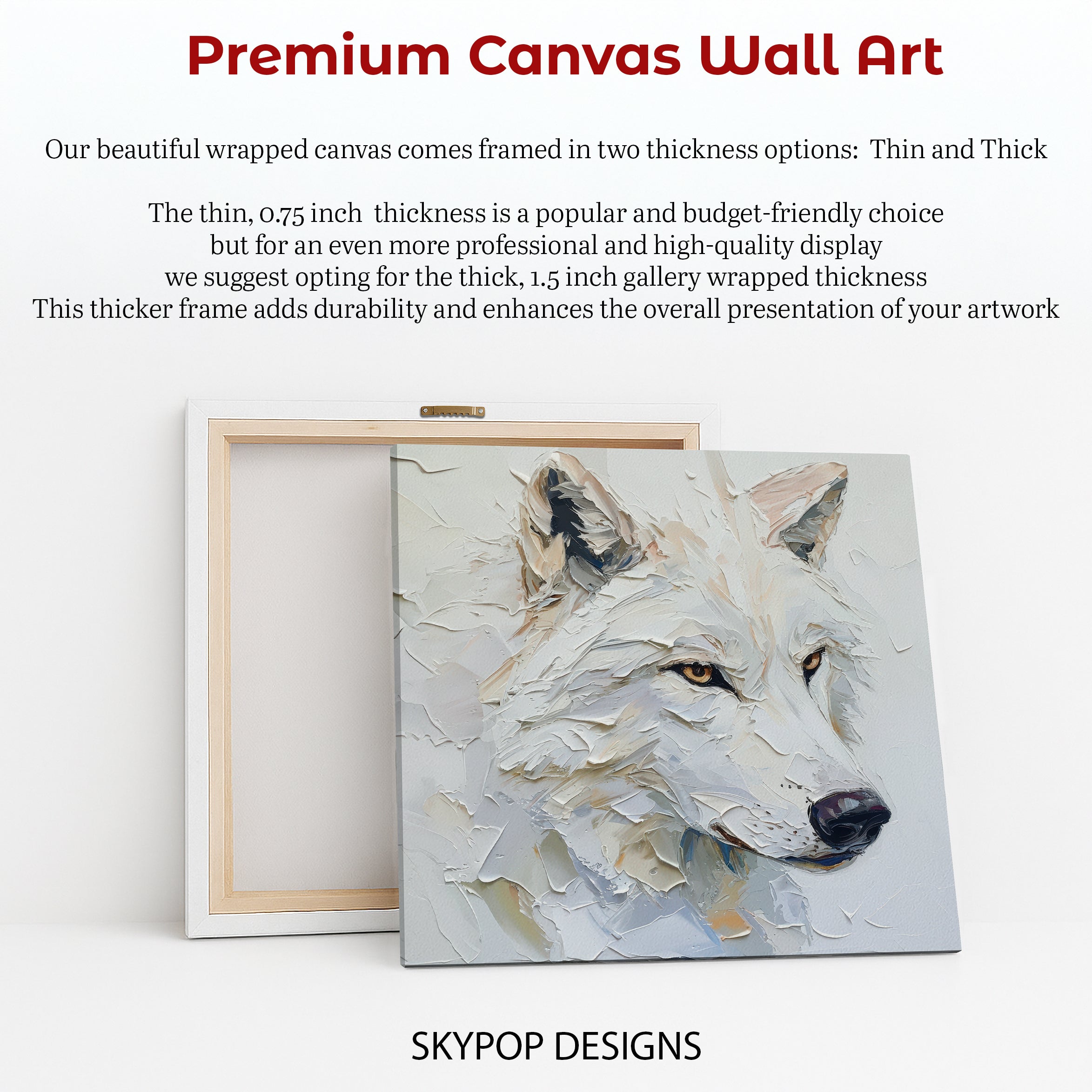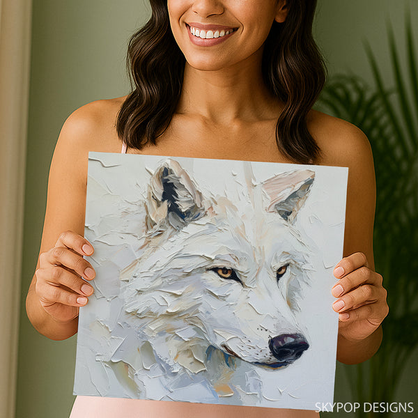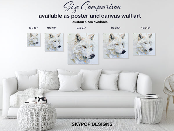 Capture the wild spirit of a majestic wolf with this stunning canvas wall art, rendered in a striking textured style. This unique piece of nature art, featuring a white wolf with captivating eyes, will transform your living room or bedroom into a serene yet powerful space. The interplay of whites, greys, and subtle multicolor accents creates a sophisticated and modern aesthetic, perfect for contemporary or minimalist decor. This wolf poster is ideal for animal art lovers, offering a captivating focal point that inspires a sense of calm and wild beauty. The bold textural application adds depth and dimension, ensuring this canvas wall art stands out in any setting. It's a striking addition to your home decor, ideal as a housewarming gift or for anyone who appreciates the elegance of nature's creatures. Enhance your office or entryway with this eye-catching artwork that sparks conversation and adds a touch of untamed grace. The high-quality print ensures vibrant colors and intricate details, bringing the wolf's intense gaze to life. Elevate your space today with this exceptional wolf canvas art, a perfect blend of abstract expression and wildlife portrayal. This versatile wall art is designed to complement various interior styles, making it a must-have for your collection.