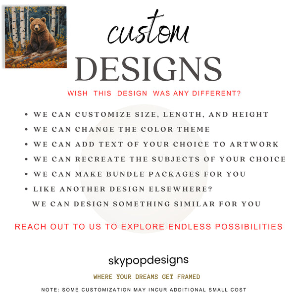 At SKYPOPDESIGNS, we specialize in high-quality canvas and poster prints designed to bring sophistication and style to your space. Please note that our designs are not created with 3D textures or as original oil, acrylic, or watercolor paintings; they are instead HD reproductions of original artwork. This approach allows us to offer these visually stunning pieces at competitive prices, ensuring you receive top-tier, maintenance-free art that's easy to enjoy.