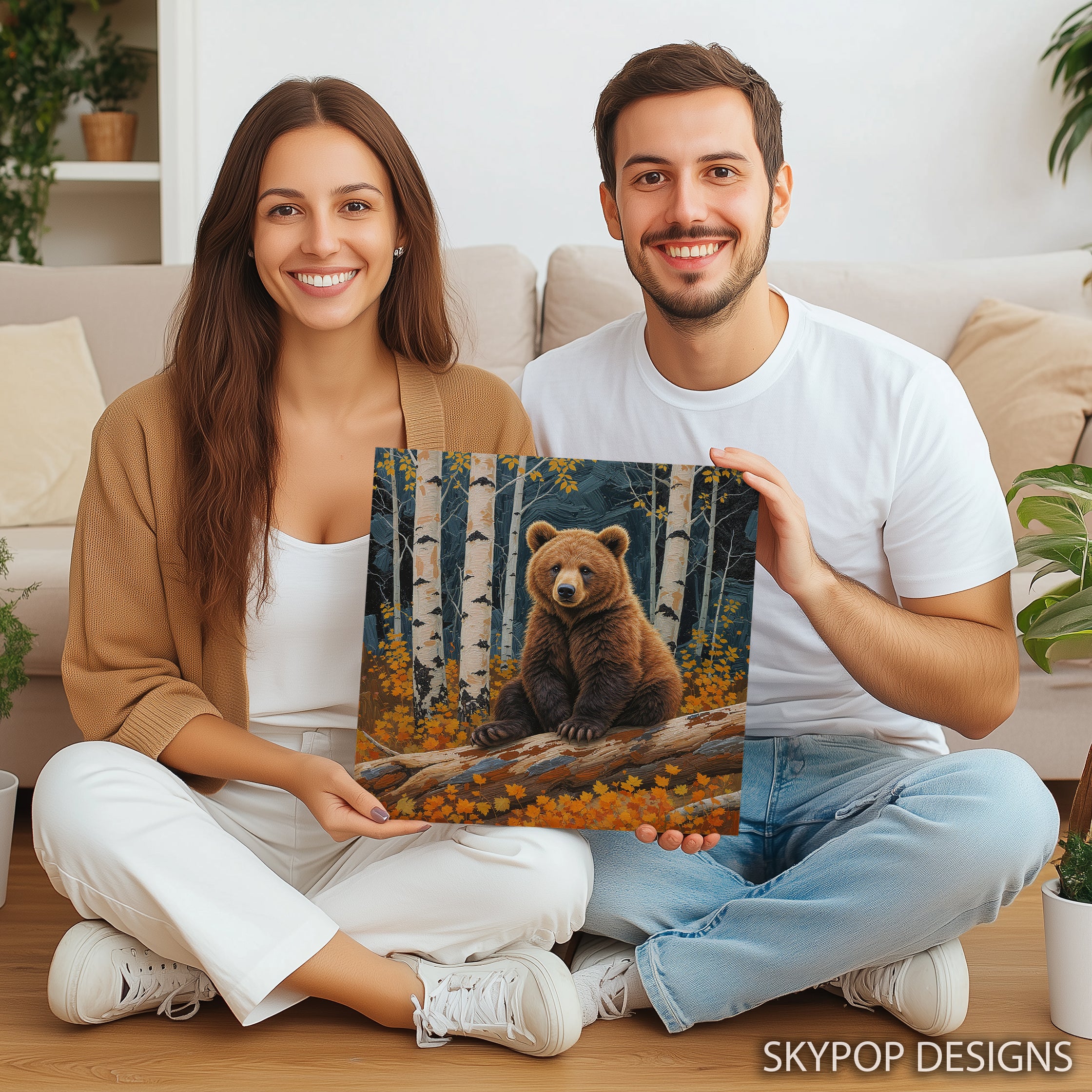 Bring the beauty of the wilderness into your home with this stunning bear canvas wall art, perfect for any nature lover. The vibrant multicolor hues and impressionistic style create a captivating focal point that will transform your living room or bedroom. This striking poster or canvas wall art showcases a majestic brown bear sitting on a log amidst a backdrop of birch trees and autumn leaves, evoking a sense of tranquility and the changing seasons. The earthy browns and warm oranges, accented by black and white details, inspire a feeling of grounding and connection to nature. Ideal for rustic or farmhouse decor, this piece adds a touch of natural charm to your entryway or game room. The textured brushstrokes of this impressionist artwork lend a dynamic feel to the composition, making it a truly unique addition to your wall decor. It's a perfect housewarming gift, birthday present, or holiday surprise for anyone who appreciates the power and serenity of the outdoors. This versatile wall art brings a sense of calm and adds a bold statement to any space. Celebrate the raw beauty of nature with this exquisite bear canvas art, designed to elevate your home’s aesthetic. Make this breathtaking artwork a centerpiece of your decor and experience the wild's embrace every day. Elevate your space with this captivating bear poster or canvas wall art today.