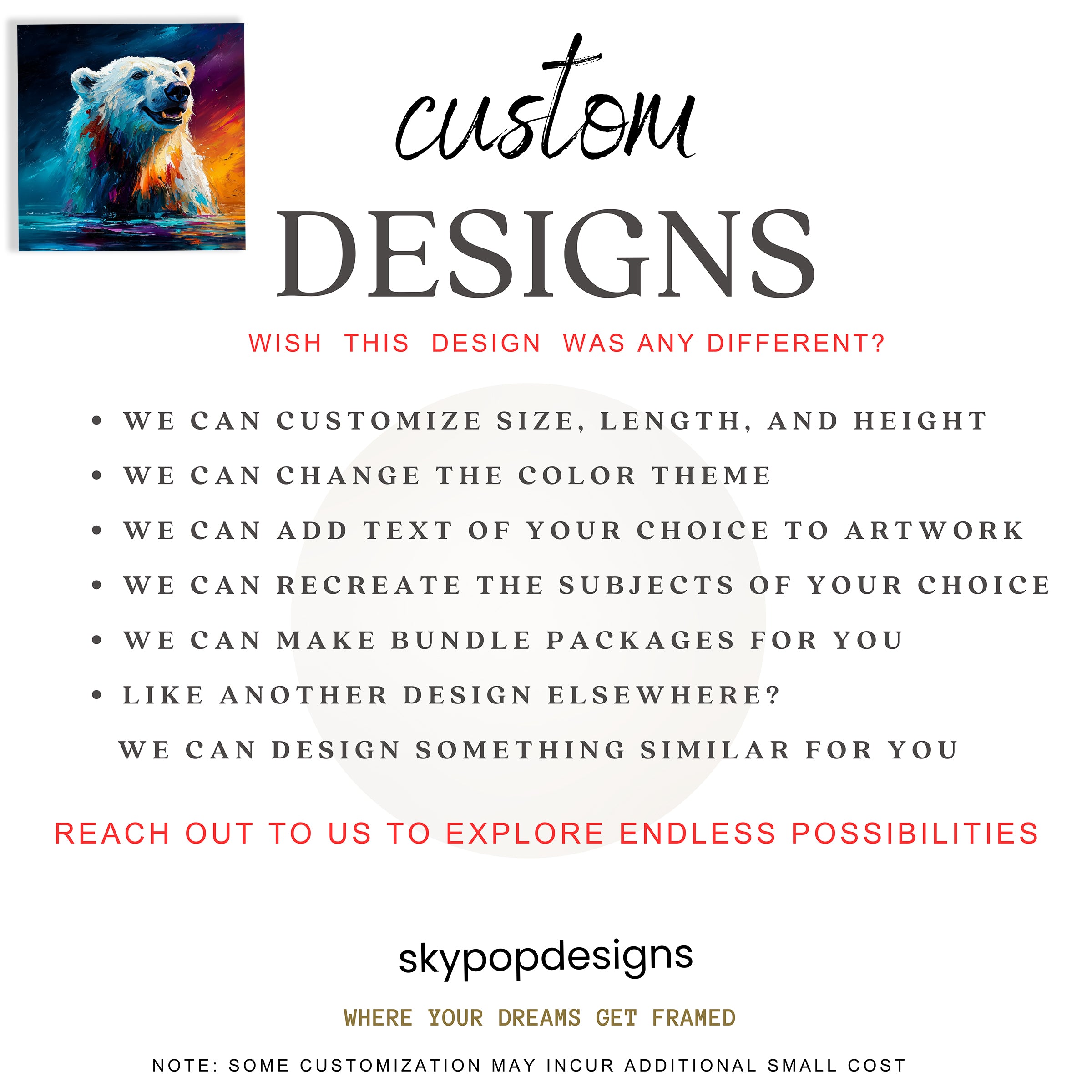 At SKYPOPDESIGNS, we specialize in high-quality canvas and poster prints designed to bring sophistication and style to your space. Please note that our designs are not created with 3D textures or as original oil, acrylic, or watercolor paintings; they are instead HD reproductions of original artwork. This approach allows us to offer these visually stunning pieces at competitive prices, ensuring you receive top-tier, maintenance-free art that's easy to enjoy.