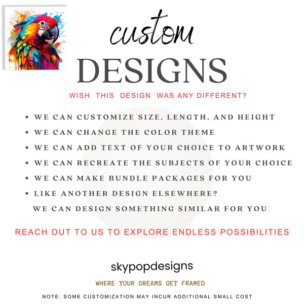 Keywords: Pop Art Parrot, Abstract Parrot Art, Nature Parrot Canvas, Multicolor Wall Art, Blue Parrot Poster, Red Parrot Splash, Yellow Parrot Art, Contemporary Decor, Modern Wall Art, Bohemian Art, Living Room Art, Bedroom Wall Decor, Office Art Print, Entryway Decor, Vibrant Parrot Art, Tropical Parrot Canvas, Splash Art Poster, Joyful Wall Decor, Energetic Art Piece, Canvas Wall Art, Parrot Print, Home Decor Statement, Unique Wall Art, Artistic Flair, Interior Design Accent, Birthday Gift Art, Holiday Gift Idea, Housewarming Present, Animal Wall Art, Colorful Canvas