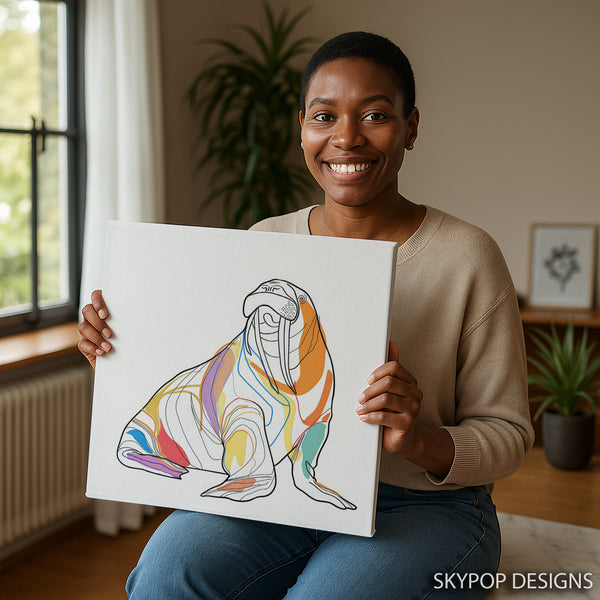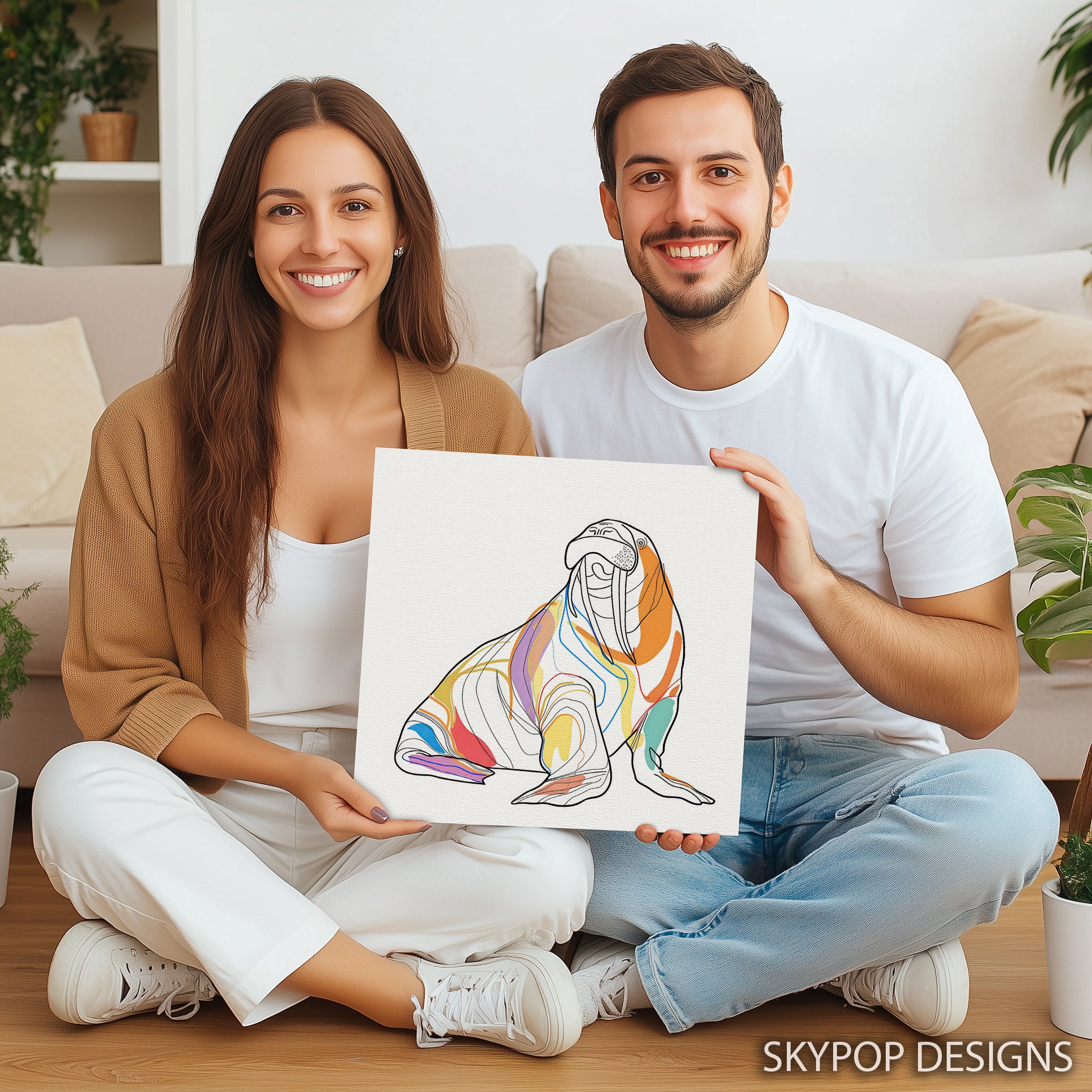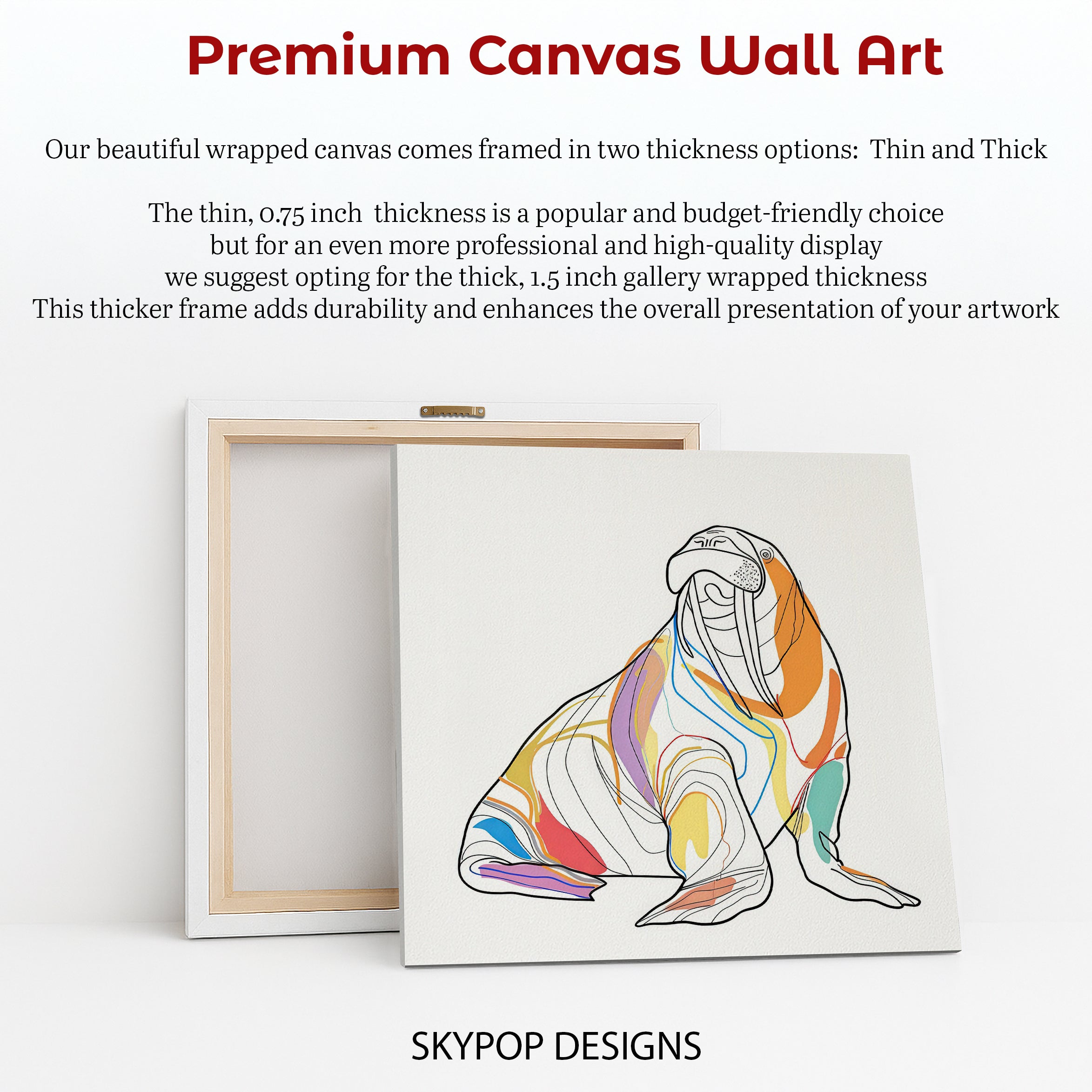 Keywords: Abstract Walrus Art, Multicolor Walrus Canvas, Modern Wall Art, Contemporary Walrus Poster, Minimalist Home Decor, Scandinavian Art Print, Living Room Art, Bedroom Wall Decor, Office Art, Hallway Art, Colorful Animal Art, Orange Blue Yellow Walrus, Vibrant Walrus Illustration, Abstract Animal Art, Modern Art Print, Eclectic Decor Accent, Bold Line Art, Artistic Walrus Design, Sophisticated Wall Decor, Playful Energy Art, Natural Beauty Art, Animal Lover Gift, Housewarming Gift Idea, Birthday Gift Art, Holiday Decor Piece, Quality Canvas Print, Statement Wall Art, Vibrant Home Decor, Artistic Interior Design, Unique Wall Decor