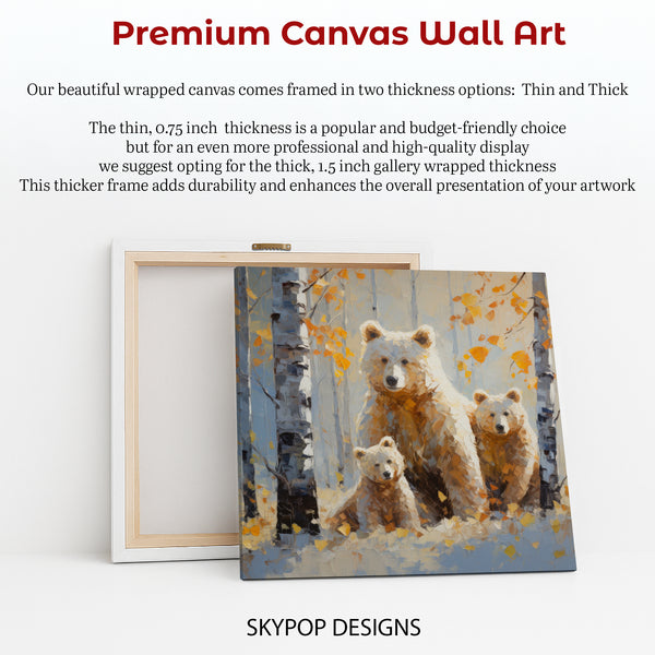 Keywords: Nature Art, Animal Art, Impressionism Art, Bear Art, Rustic Decor, Farmhouse Decor, Traditional Decor, Living Room Art, Bedroom Art, Entryway Art, Dining Room Art, Brown Art, Gold Art, Multicolor Art, Beige Art, Bear Family Art, Autumn Forest Art, Wildlife Art, Canvas Wall Art, Wall Poster, Home Decor, Interior Design, Housewarming Gift, Nature Gift, Wildlife Gift, Cozy Atmosphere, Serene Art, Tranquil Home, Textured Art, Bear Print