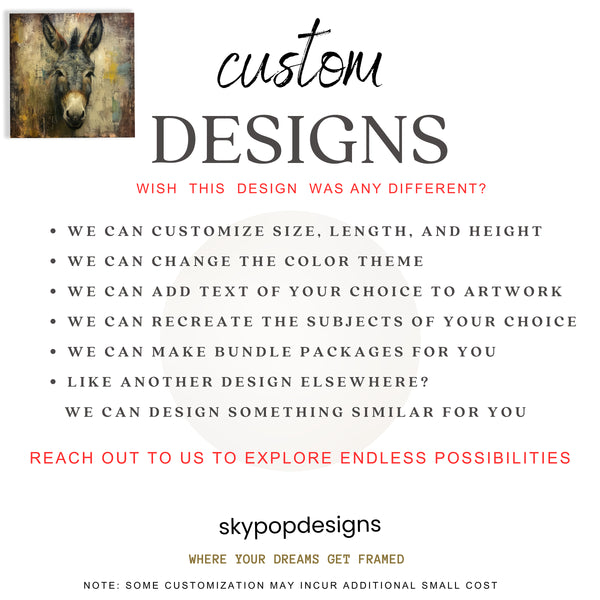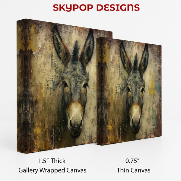 Keywords: Donkey Art, Canvas Wall Art, Animal Wall Art, Rustic Decor, Farmhouse Decor, Contemporary Art, Figurative Art, Living Room Art, Bedroom Art, Entryway Art, Dining Room Art, Brown Art, Beige Art, Grey Art, Multicolor Art, Donkey Portrait, Wall Decor, Home Decor, Statement Piece, Textured Art, Earthy Tones, Classic Elegance, Modern Art, Rustic Charm, Farm Animal Art, Art Poster, Gift for Art Lovers, Housewarming Gift, Birthday Gift, Unique Wall Art