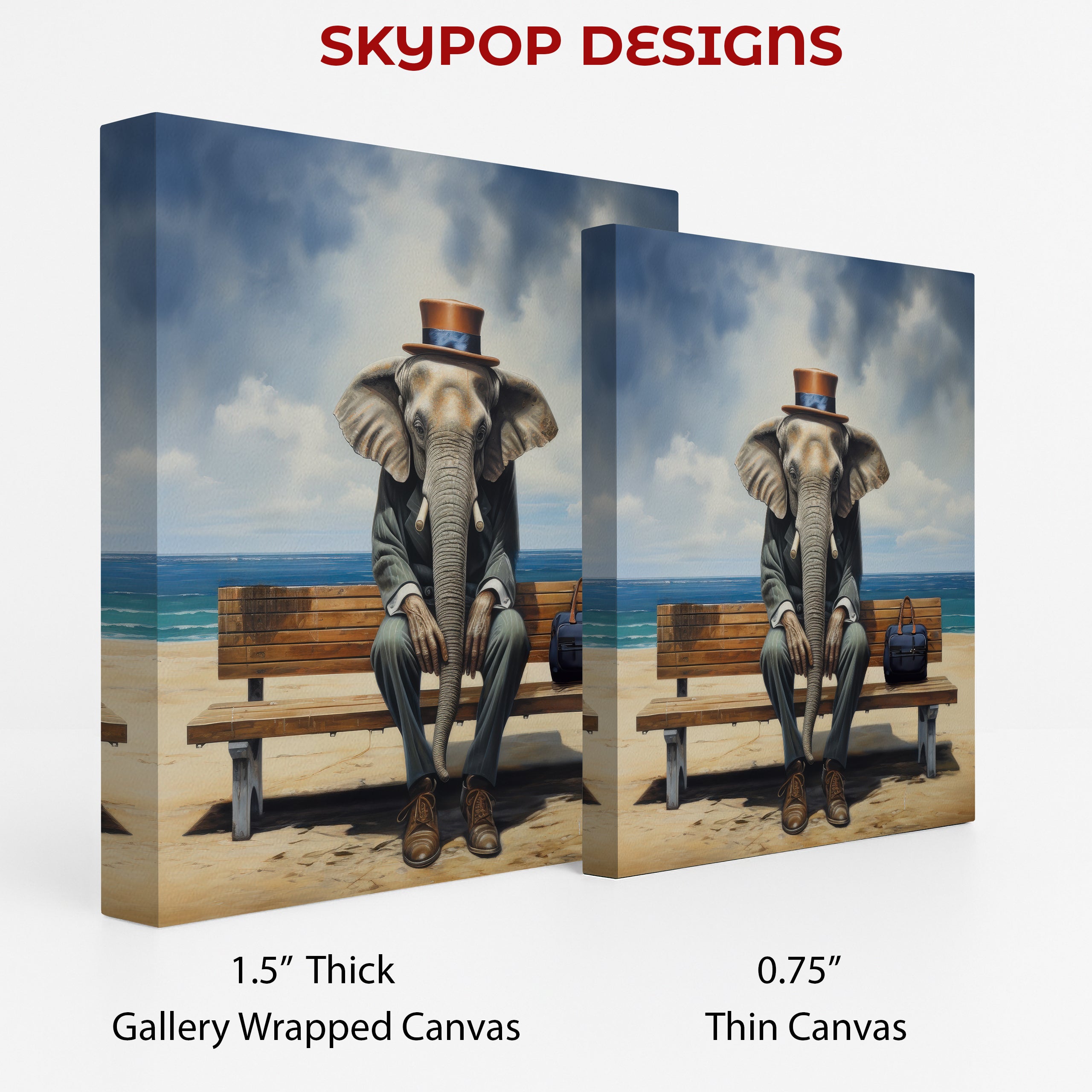 Transform your space with this captivating elephant canvas wall art, showcasing a dapper elephant enjoying a moment of relaxation by the sea. This striking piece of conceptual art features a sophisticated elephant dressed in a suit and top hat, evoking a sense of whimsical contemplation and escape. The vibrant blues of the ocean and sky contrast beautifully with the warm neutrals of the sand and the elephant's attire, creating a visually arresting composition. This unique poster or canvas wall art is perfect for adding personality to your living room, office, or bedroom, offering a touch of surrealism to any contemporary or bohemian decor. The detailed rendering of the elephant's texture and the atmospheric background make this canvas wall art a true conversation starter. It's an ideal gift for animal lovers, art collectors, or anyone seeking to elevate their home decor with a piece that sparks joy and imagination. Whether you're redecorating your sanctuary or searching for a statement piece, this versatile artwork enhances any room. The striking imagery promotes a sense of calm and reflection, making it a wonderful addition to spaces designed for relaxation and inspiration. Elevate your walls with this high-quality canvas print that captures a moment of charming absurdity. This elephant art will undoubtedly become a cherished focal point in your home's wall art collection.