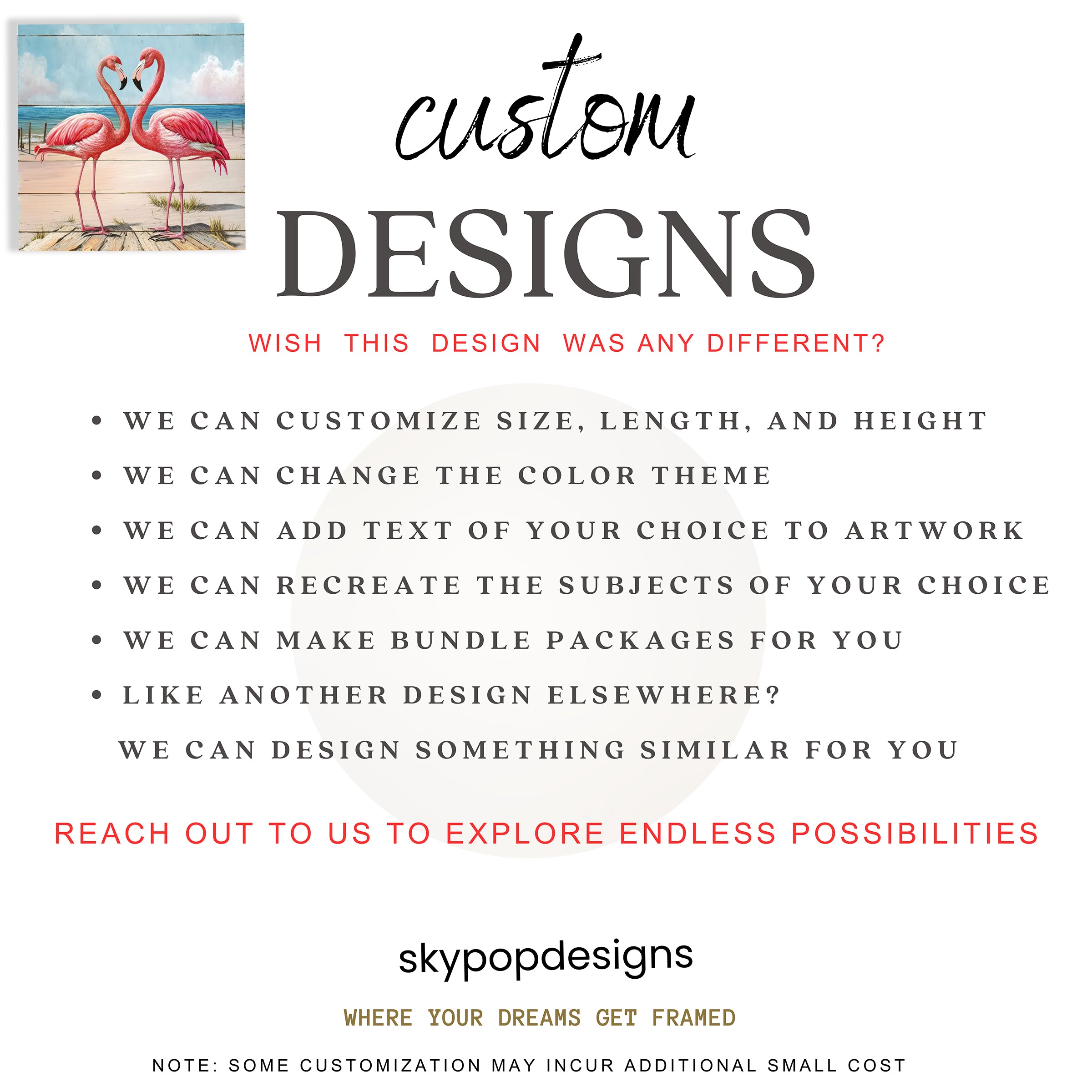 Looking for a custom design, or do you love a particular design but need it in a different size or orientation? Perhaps you've found a design elsewhere and wish for us to create something similar for you? Drop us a message! We're dedicated to meeting your needs and will work closely with you to ensure your vision comes to life.