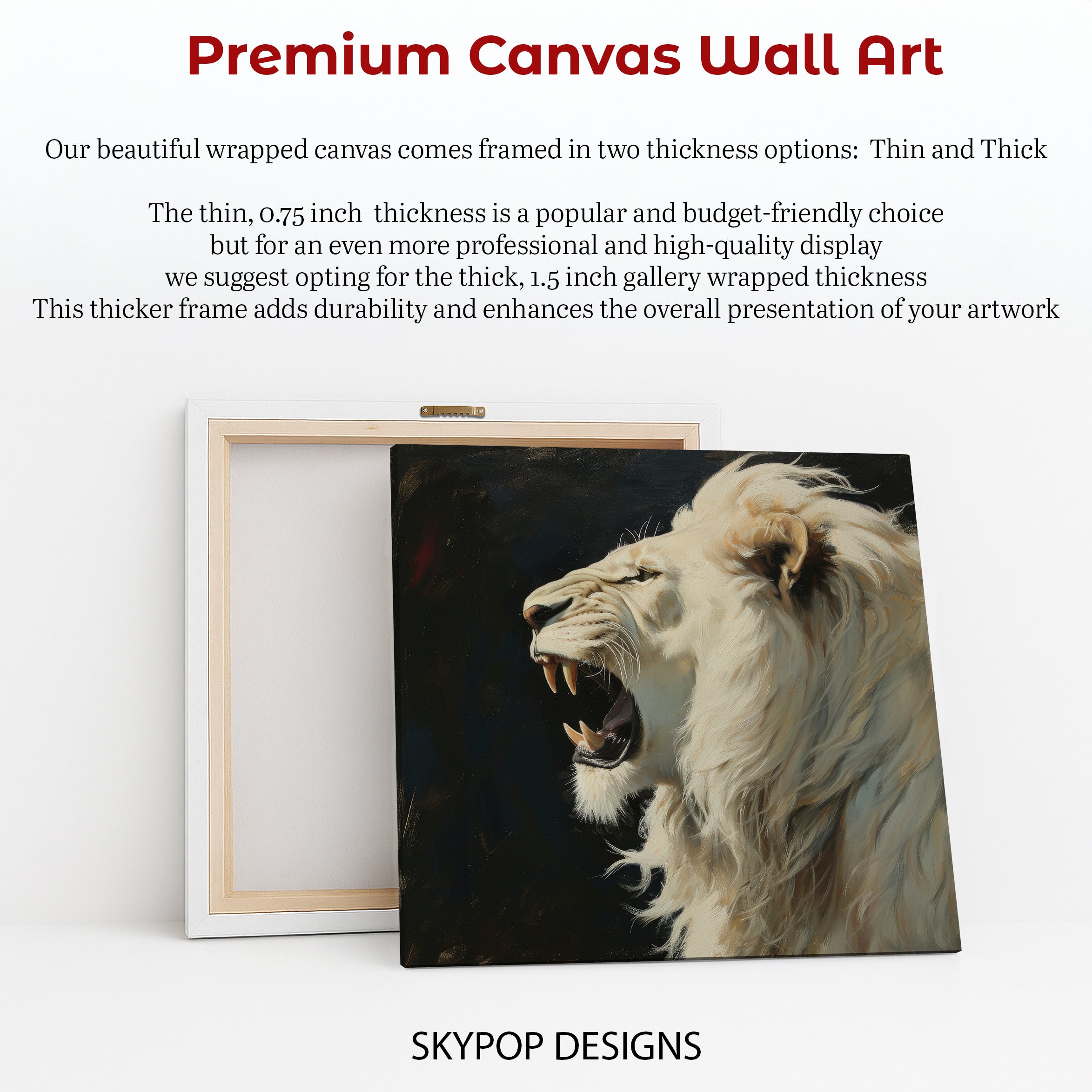 Keywords: Lion Canvas Art, Majestic Roar Print, Nature Wall Art, Animal Wall Decor, Contemporary Art, Modern Home Decor, Rustic Accents, Living Room Art, Bedroom Wall Art, Office Decor, Entryway Art, Beige Wall Art, Brown Animal Art, Black and White Art, Wildlife Poster, Canvas Print, Fine Art Print, Home Decor Inspiration, Statement Wall Art, Gift for Animal Lover, Wildlife Enthusiast Gift, Adventurer Gift, Powerful Art, Elegant Decor, Interior Design, Wall Hanging, Hand-Painted Look, Realistic Animal Art, Bold Statement Piece, Roaring Lion Artwork