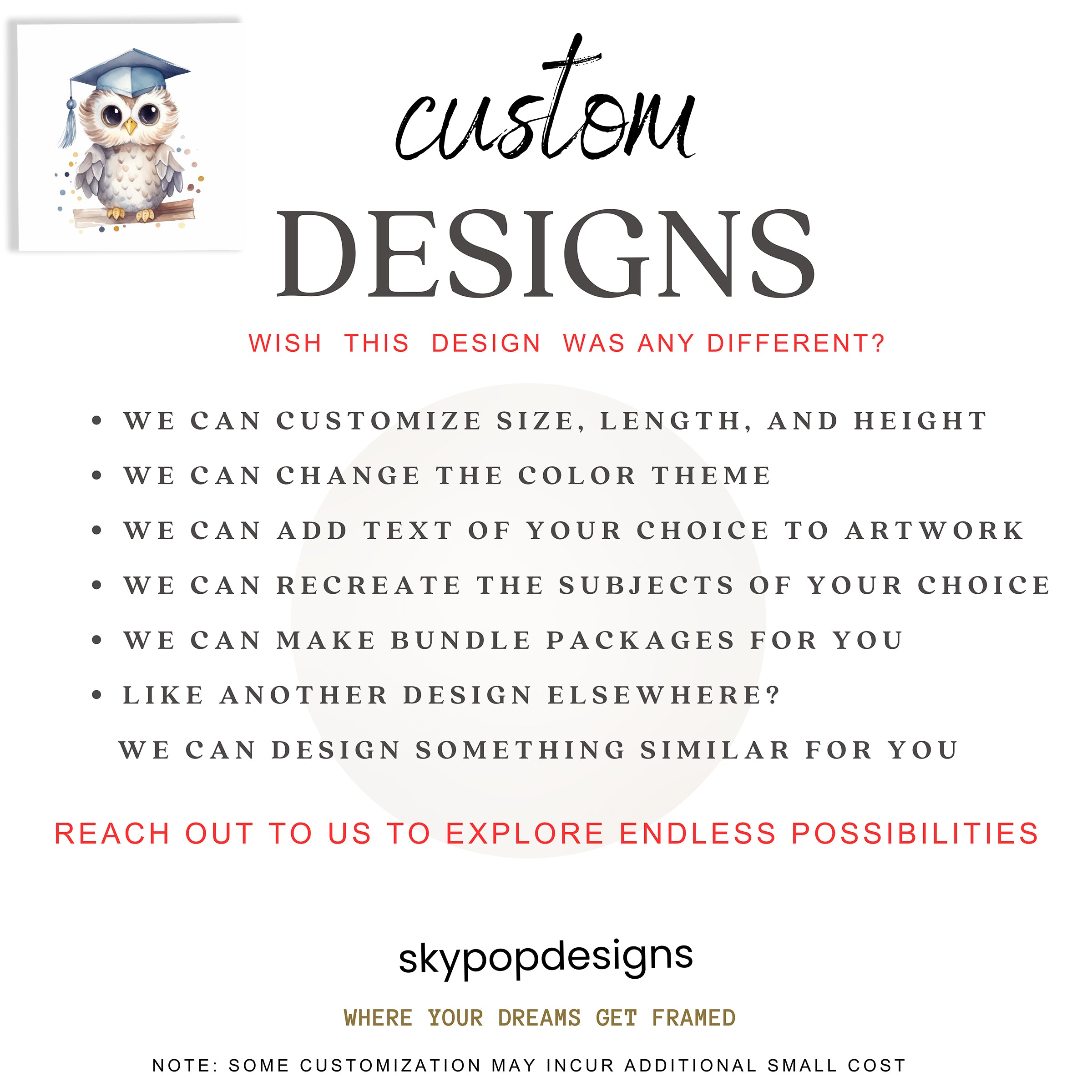 Looking for a custom design, or do you love a particular design but need it in a different size or orientation? Perhaps you've found a design elsewhere and wish for us to create something similar for you? Drop us a message! We're dedicated to meeting your needs and will work closely with you to ensure your vision comes to life.