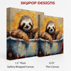 Sloth Bath Art, Canvas or Poster, Whimsical Bohemian Decor, Living Room Bedroom Nursery Wall Art, Multicolor Yellow Blue Beige