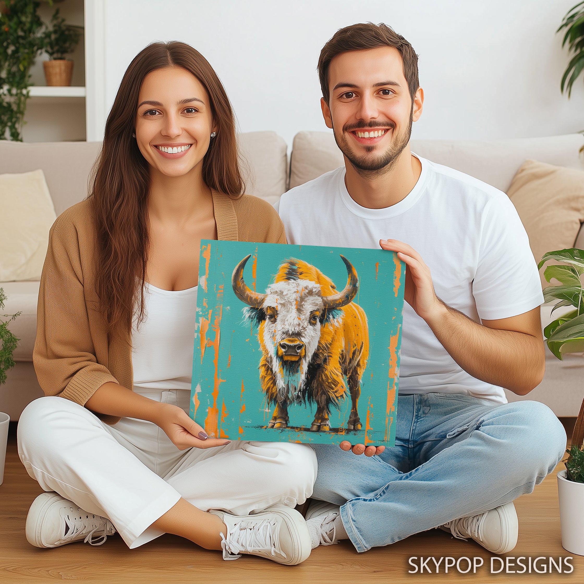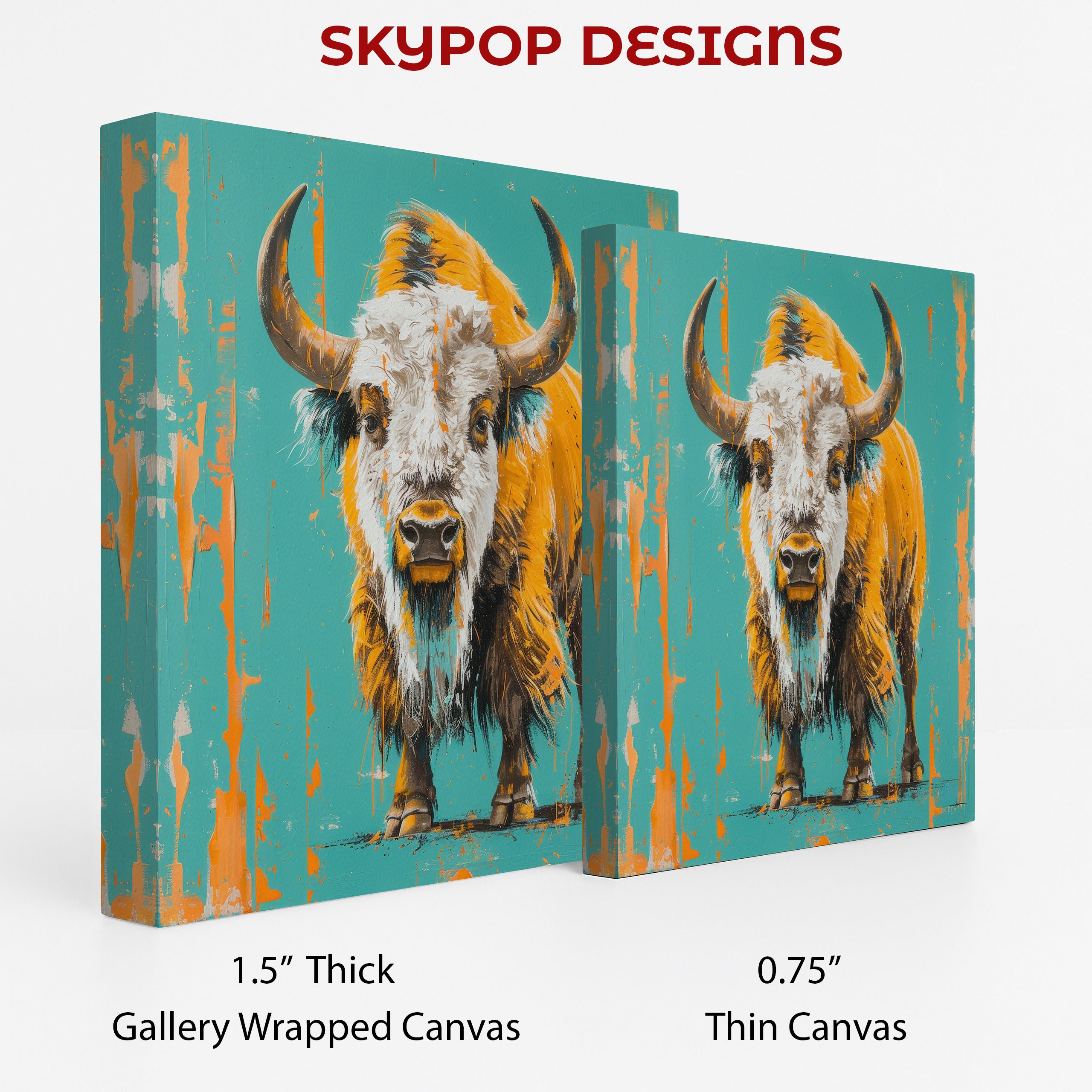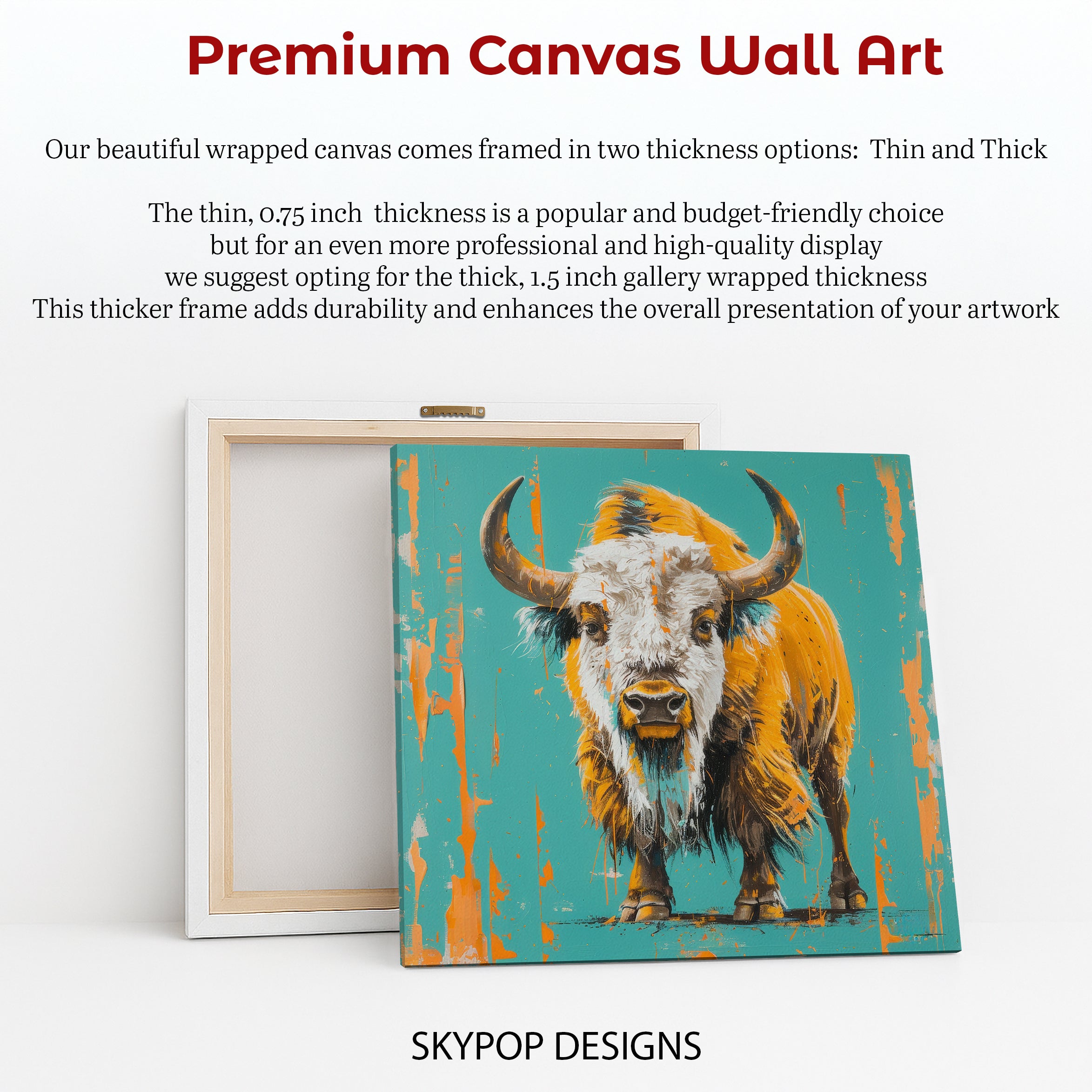 Keywords: Bison art, Canvas wall art, Abstract art, Animal art, Contemporary art, Modern decor, Minimalist decor, Living room art, Bedroom art, Office decor, Entryway art, Teal art, Orange art, Brown art, White art, Golden Bison, Wildlife art, Nature art, Statement decor, Home decor, Wall art, Interior design, Abstract bison, Animal wall art, Contemporary wall art, Modern wall decor, Bison poster, Textured art, Gift for nature lovers, Wild beauty