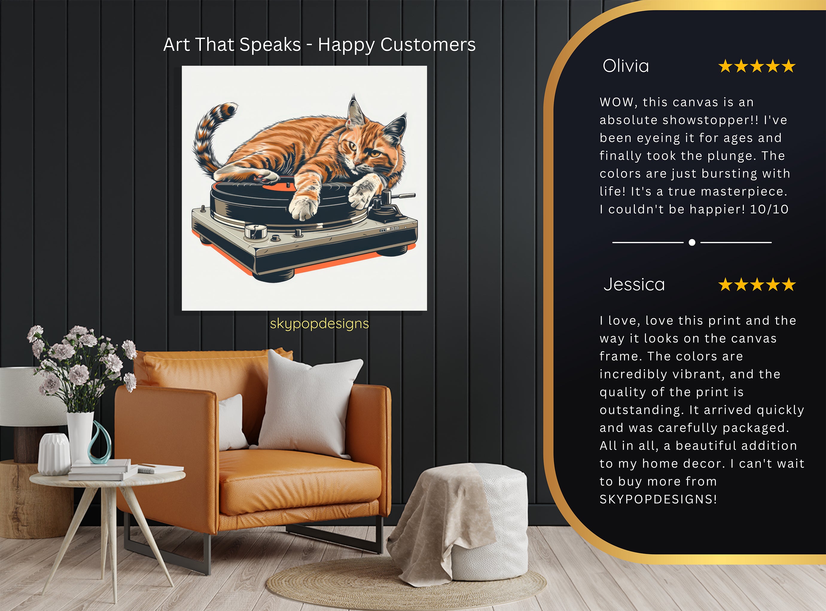 Keywords: Pop Art, Contemporary Art, Animal Art, Modern Decor, Bohemian Decor, Cat DJ Art, Vinyl Art, Canvas Wall Art, Orange Art, Brown Art, Black and White Art, Multicolor Art, Living Room Decor, Bedroom Decor, Office Decor, Music Room Decor, Cat Lover Gift, Music Lover Gift, Housewarming Gift, Unique Art, Statement Piece, Home Decor, Interior Design, Wall Art Poster, Tabby Cat Art, Retro Art, Playful Art, Vibrant Art, Creative Decor, Art Prints