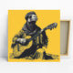 Deer Guitarist Art, Canvas or Poster, Rustic Bohemian Decor, Living Room Bedroom Wall Art, Yellow Black and White, Animal Wall Art