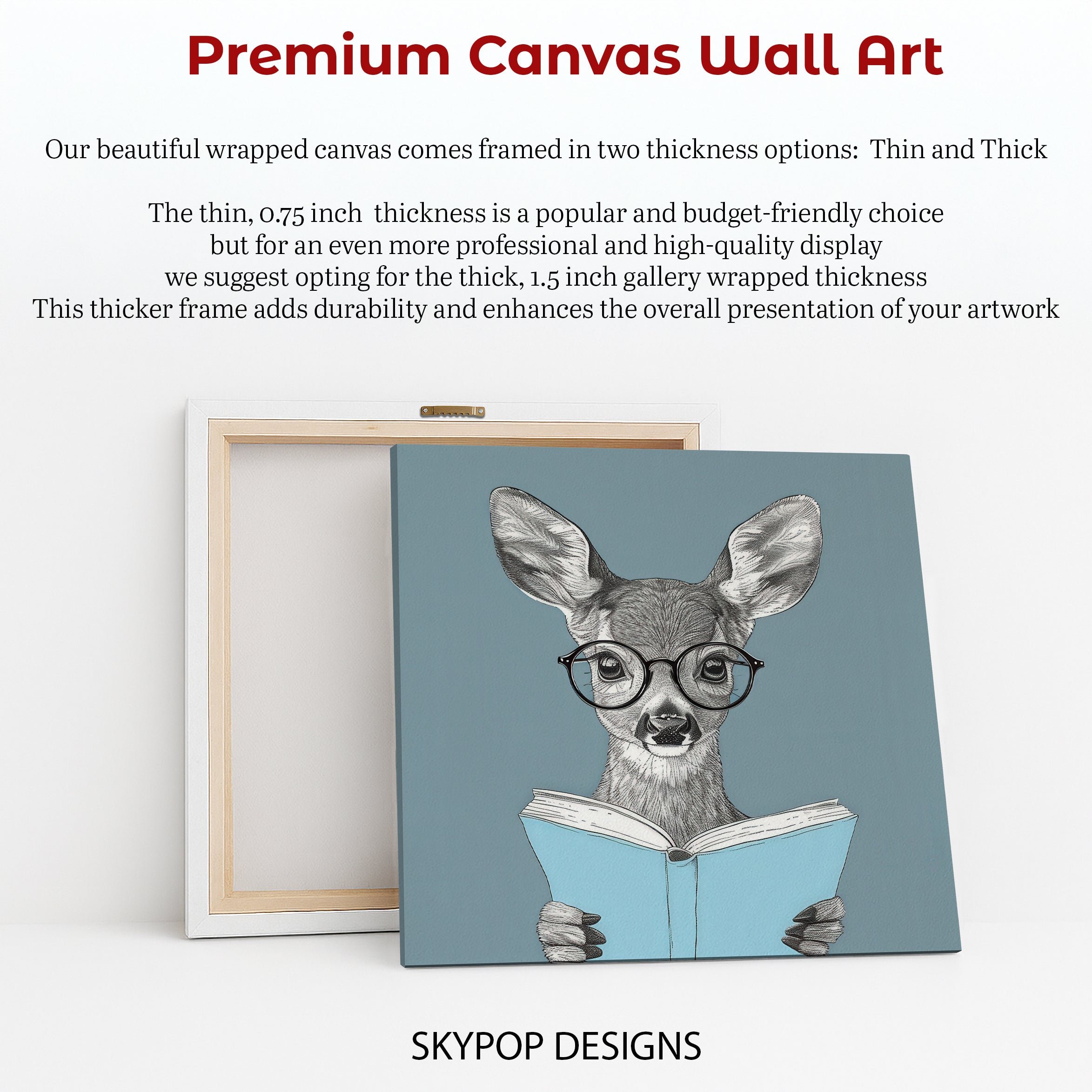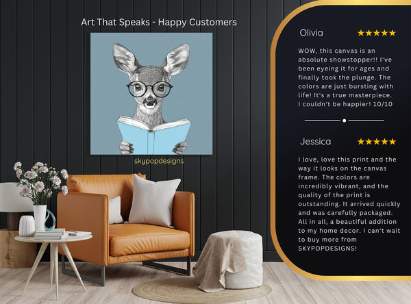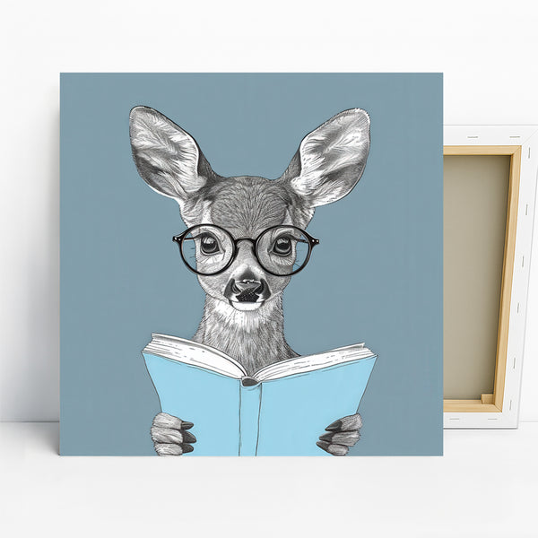 Elevate your space with this captivating deer canvas wall art, showcasing a charming deer engrossed in reading. This unique poster captures a whimsical moment with intricate black and white detail, perfect for thinkers and book lovers alike. The striking contrast of the deer's natural tones against the soft blue book adds a touch of serene intellect to any environment. This piece is ideal for your living room, office, or a cozy reading nook, creating an inspiring atmosphere. Enhance your home decor with this distinctive wall art, fitting seamlessly into modern, minimalist, or bohemian styles. The sophisticated yet playful portrayal of the deer makes it a conversation starter and a delightful addition to your art collection. Searching for the perfect gift? This canvas wall art is an excellent choice for book club members, academics, or anyone who appreciates intelligent and endearing animal art. Its versatile design ensures it complements various color palettes and interior designs, adding a touch of personality and charm. High-quality printing on durable canvas guarantees vibrant details and longevity, making this poster a lasting piece of art. Transform your home into a sanctuary of knowledge and whimsy with this eye-catching deer artwork. Add this intelligent and heartwarming piece to your wall art collection today and inspire your everyday.