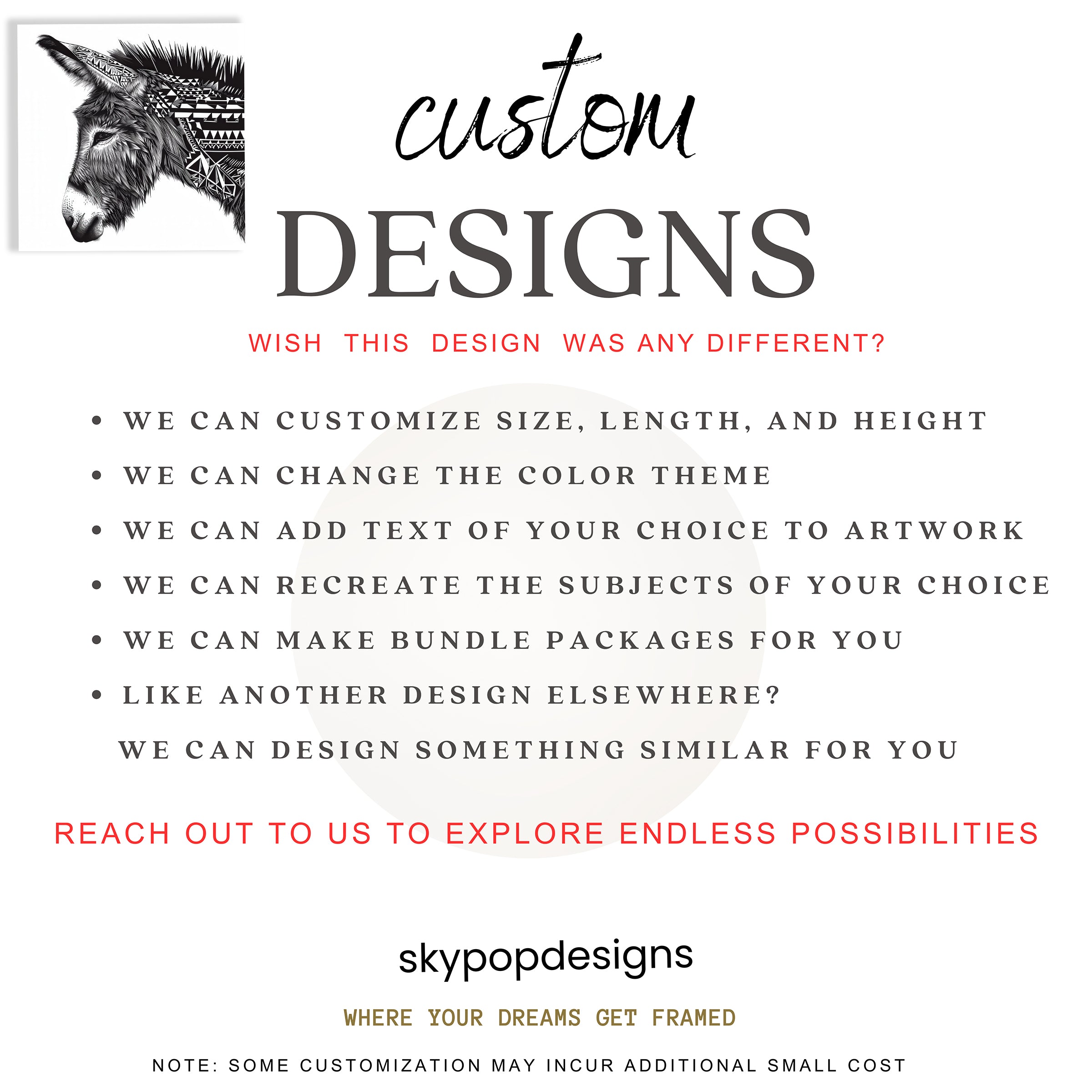 Looking for a custom design, or do you love a particular design but need it in a different size or orientation? Perhaps you've found a design elsewhere and wish for us to create something similar for you? Drop us a message! We're dedicated to meeting your needs and will work closely with you to ensure your vision comes to life.