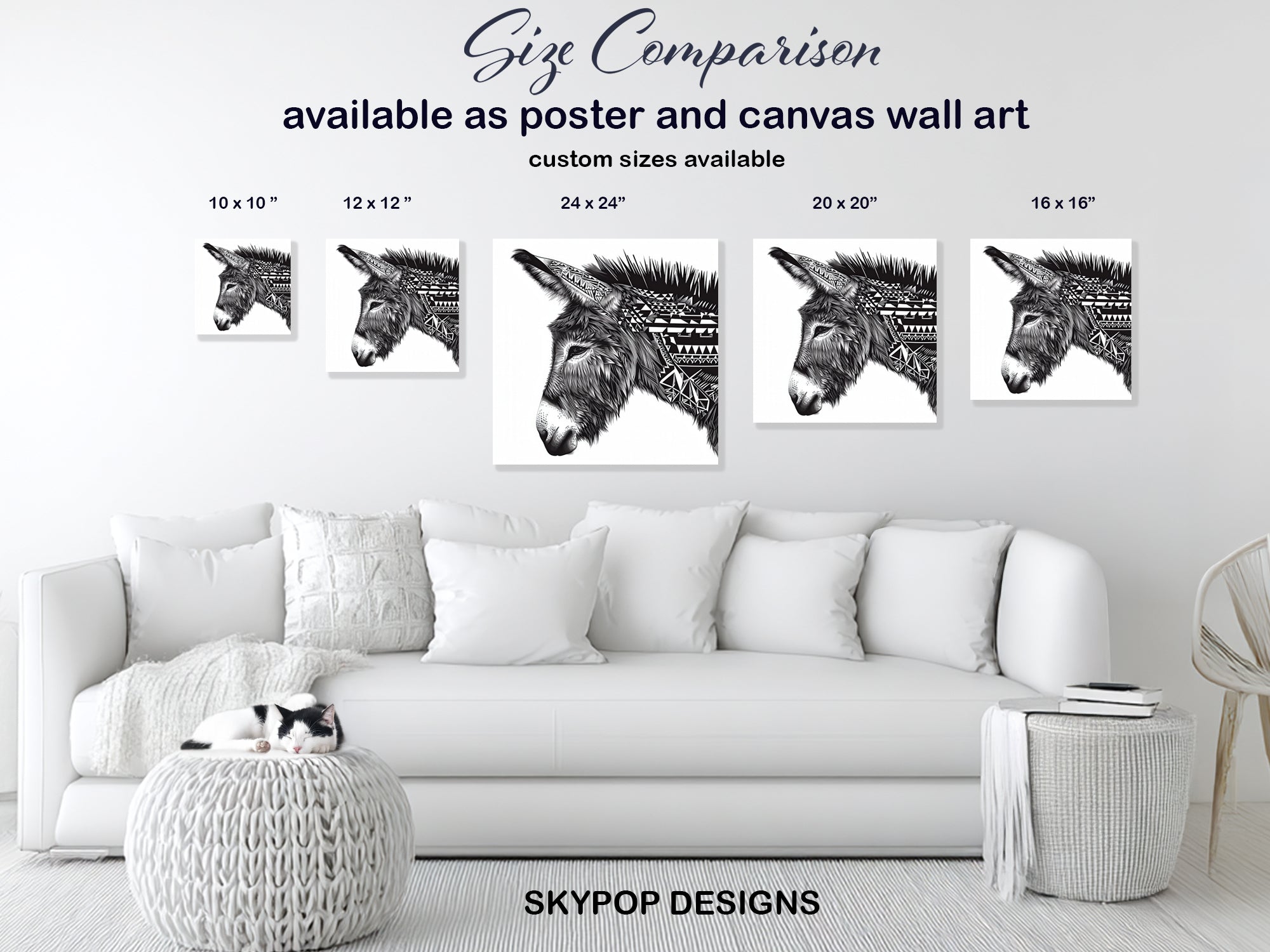 Donkey Art, Canvas or Poster, Modern Minimalist Decor, Living Room Apartment Office Bedroom Wall Art, Black and White Geometric Print
