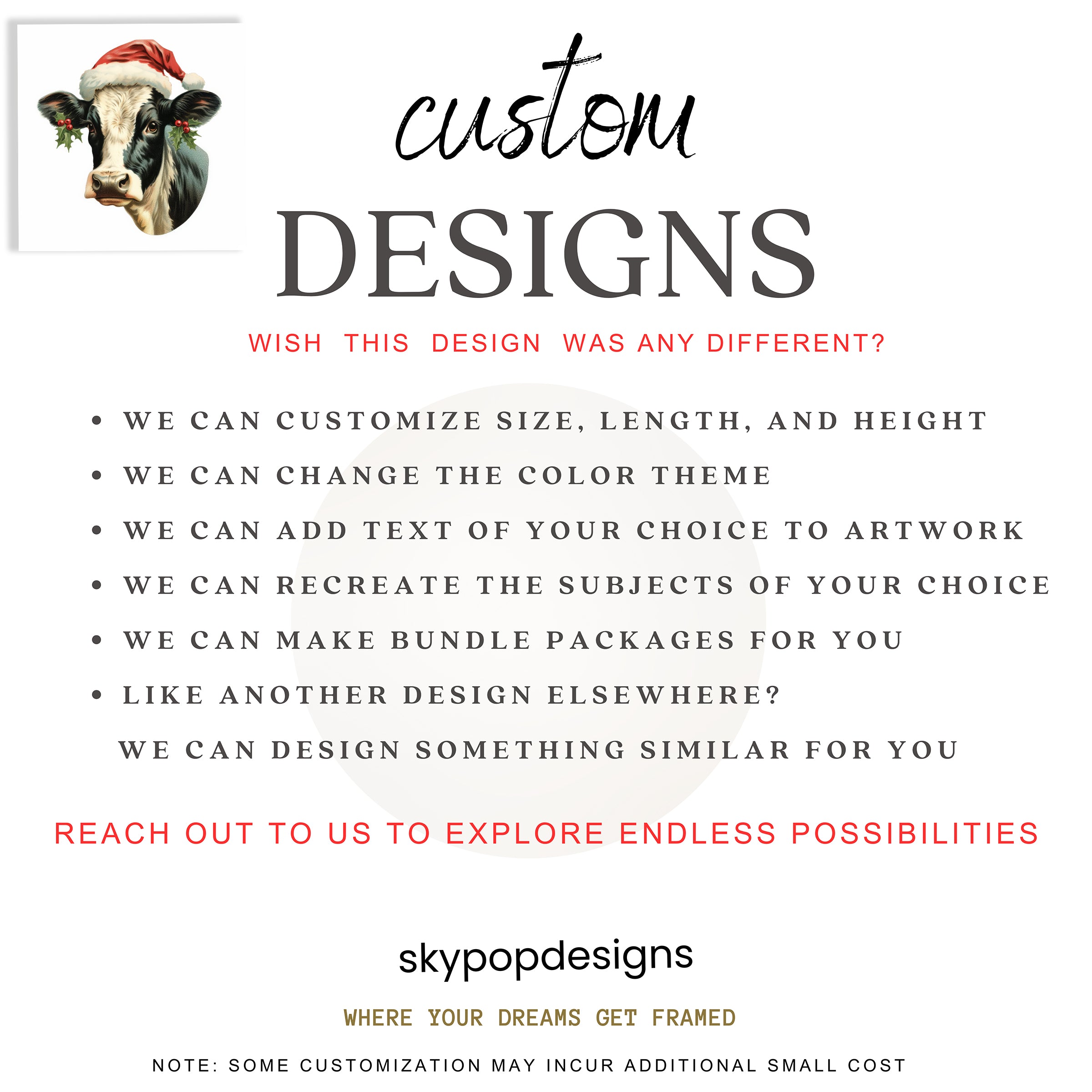 Looking for a custom design, or do you love a particular design but need it in a different size or orientation? Perhaps you've found a design elsewhere and wish for us to create something similar for you? Drop us a message! We're dedicated to meeting your needs and will work closely with you to ensure your vision comes to life.