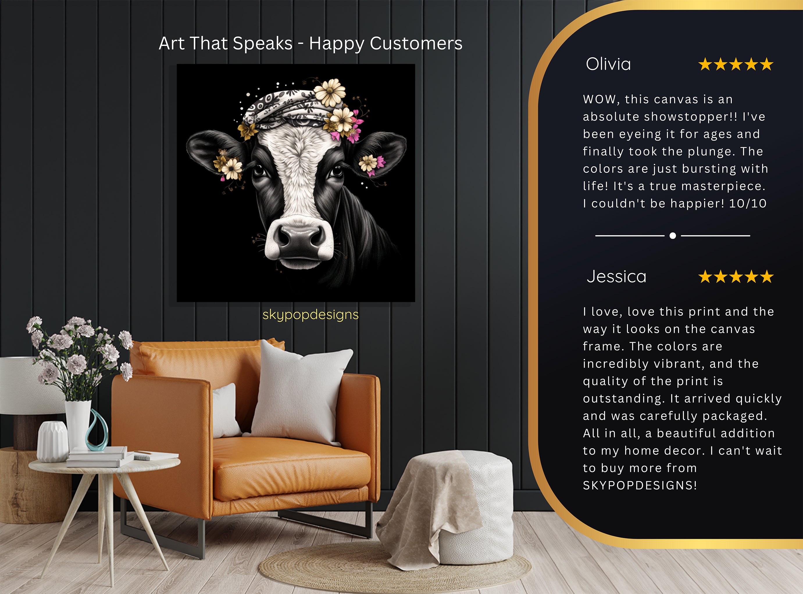 At SKYPOPDESIGNS, we specialize in high-quality canvas and poster prints designed to bring sophistication and style to your space. Please note that our designs are not created with 3D textures or as original oil, acrylic, or watercolor paintings; they are instead HD reproductions of original artwork. This approach allows us to offer these visually stunning pieces at competitive prices, ensuring you receive top-tier, maintenance-free art that's easy to enjoy.