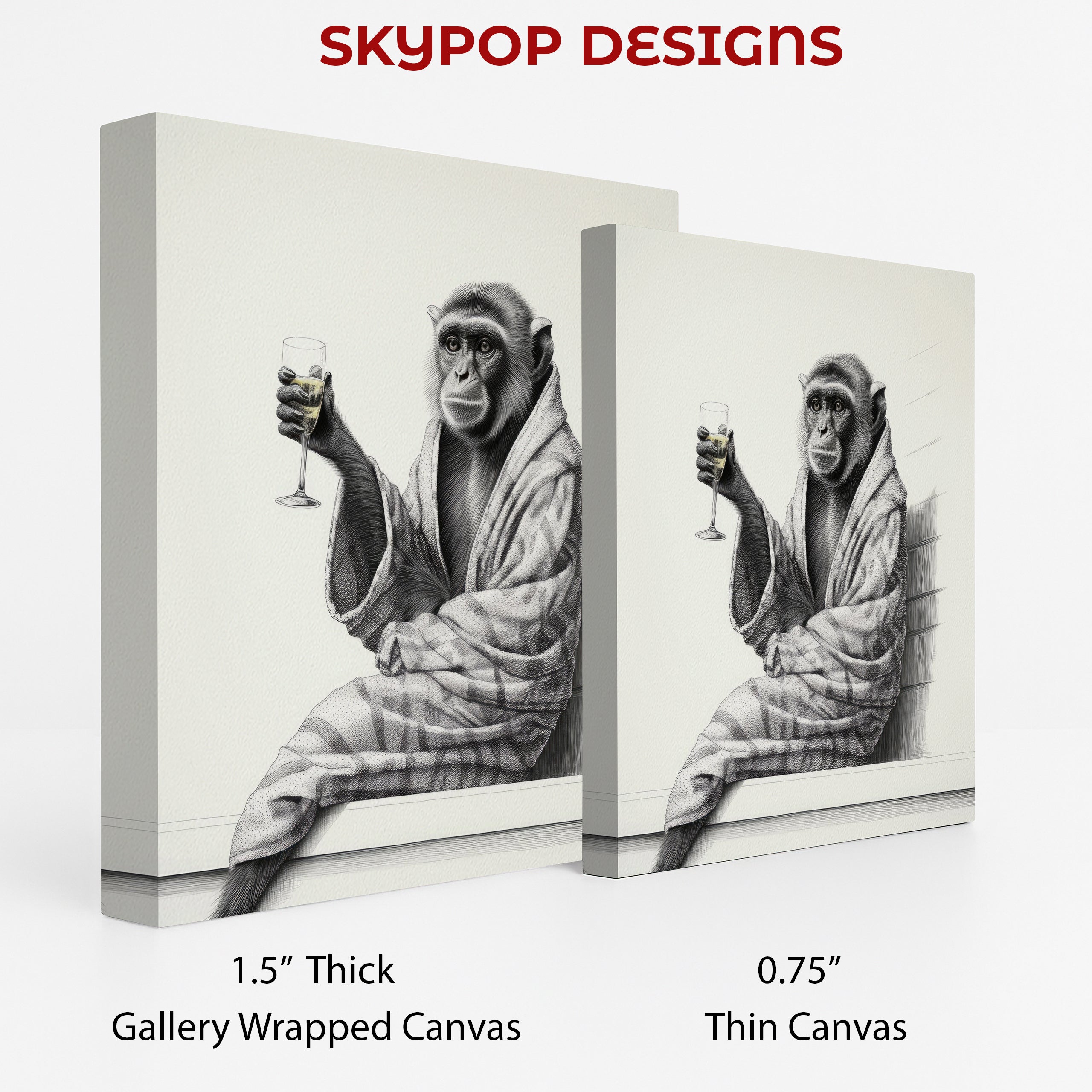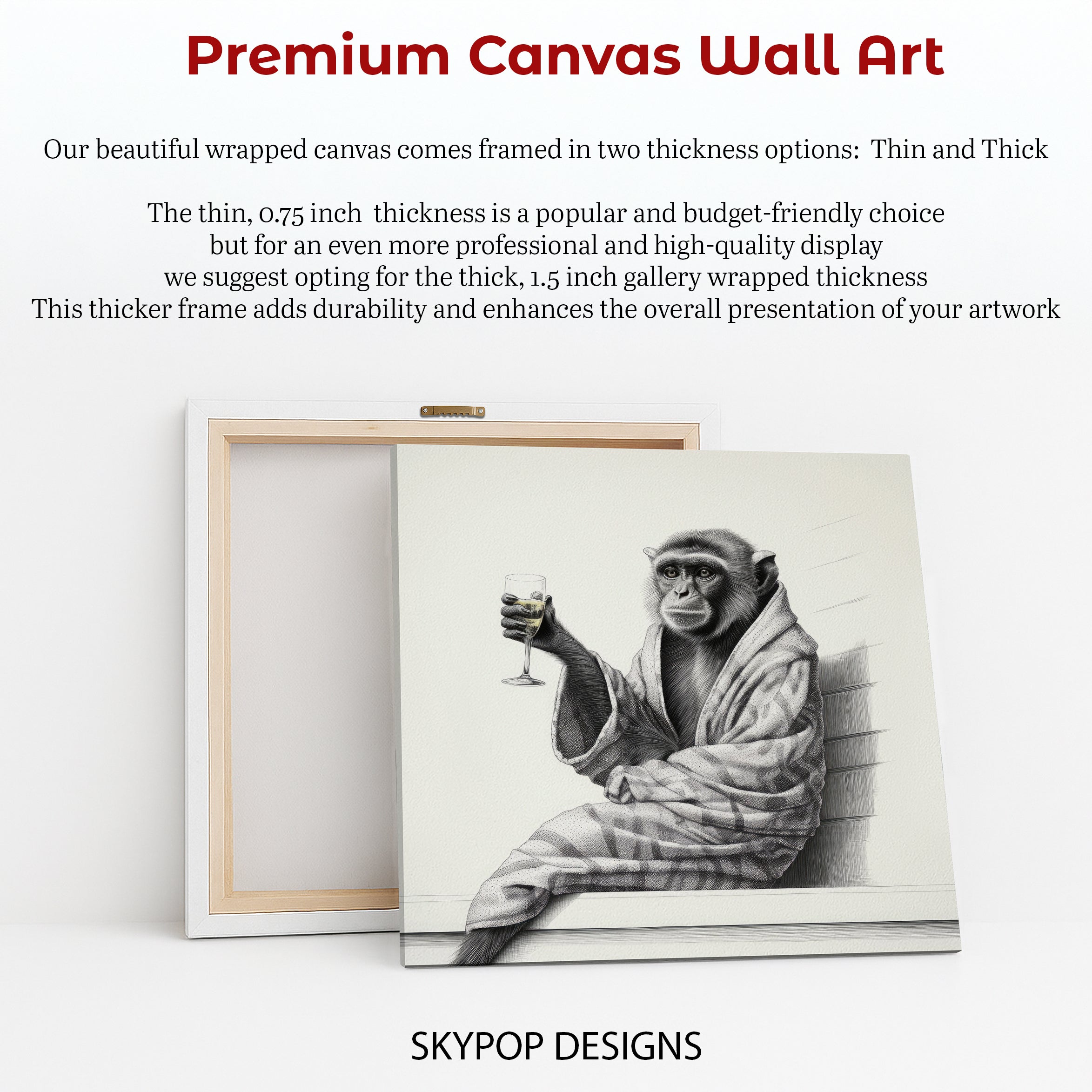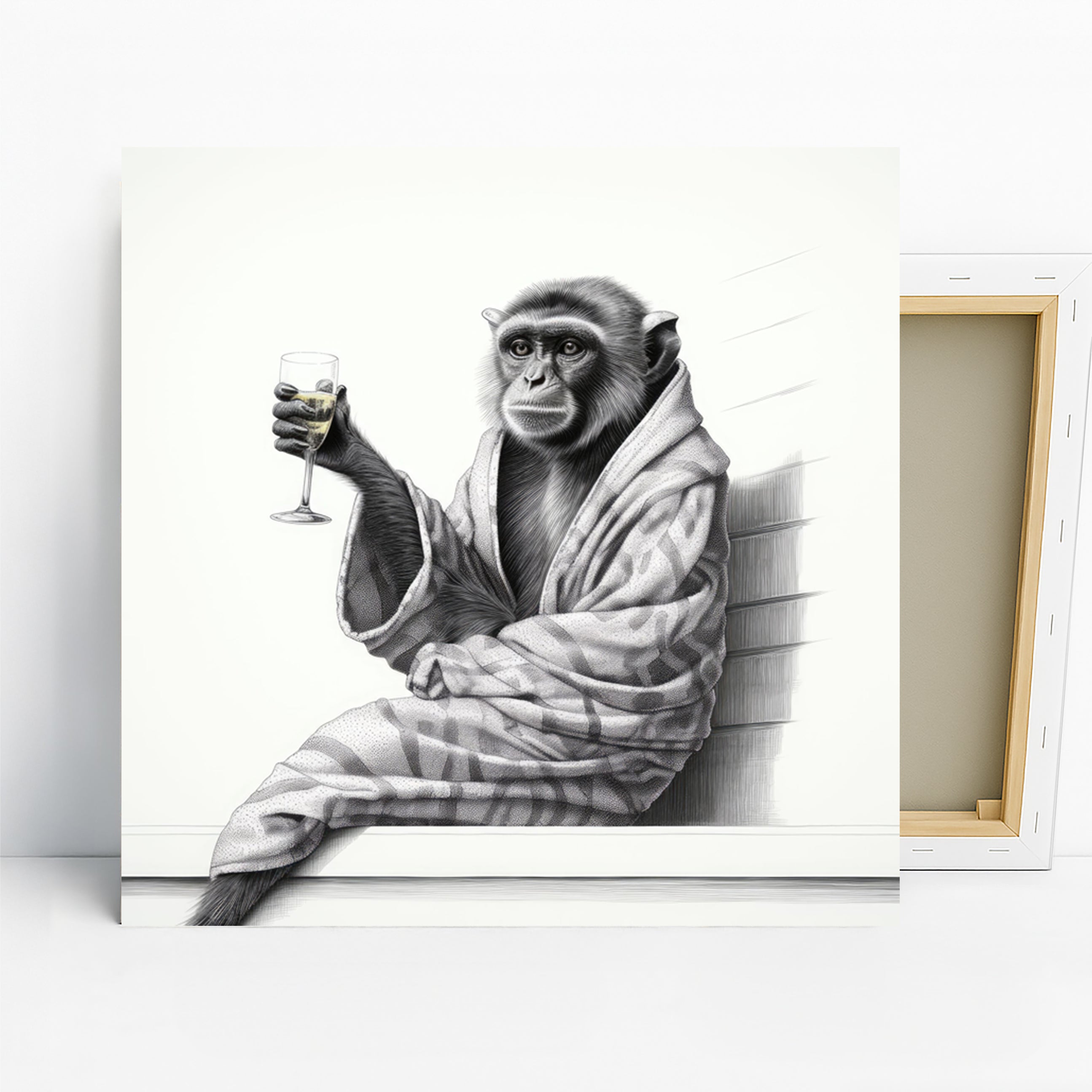 Keywords: Monkey Canvas Art, Champagne Monkey Art, Black and White Animal Art, Modern Wall Art, Contemporary Decor, Minimalist Art, Figuative Art, Classic Art Print, Living Room Art, Office Wall Decor, Bedroom Art, Entryway Art, Animal Lover Gift, Luxury Art, Humorous Wall Art, Elegant Home Decor, Sophisticated Monkey Art, Robe Monkey Print, Champagne Glass Art, Whimsical Art, Playful Decadence, High Contrast Art, Wall Decor Statement, Unique Artwork, Gift for Art Enthusiast, Housewarming Gift, Birthday Gift, Holiday Decor, Wall Poster, Canvas Print