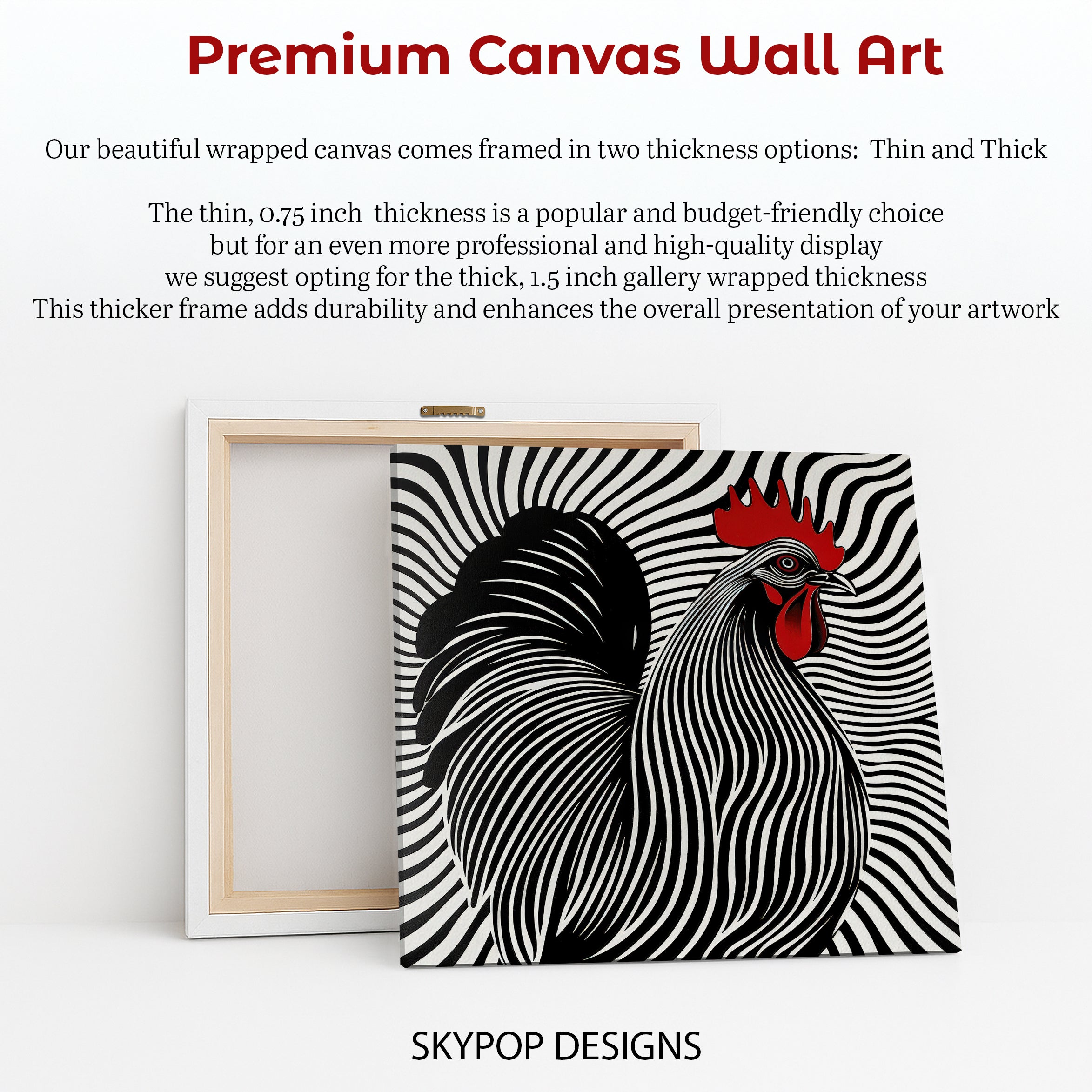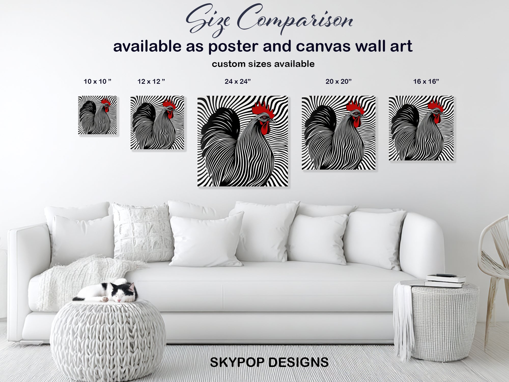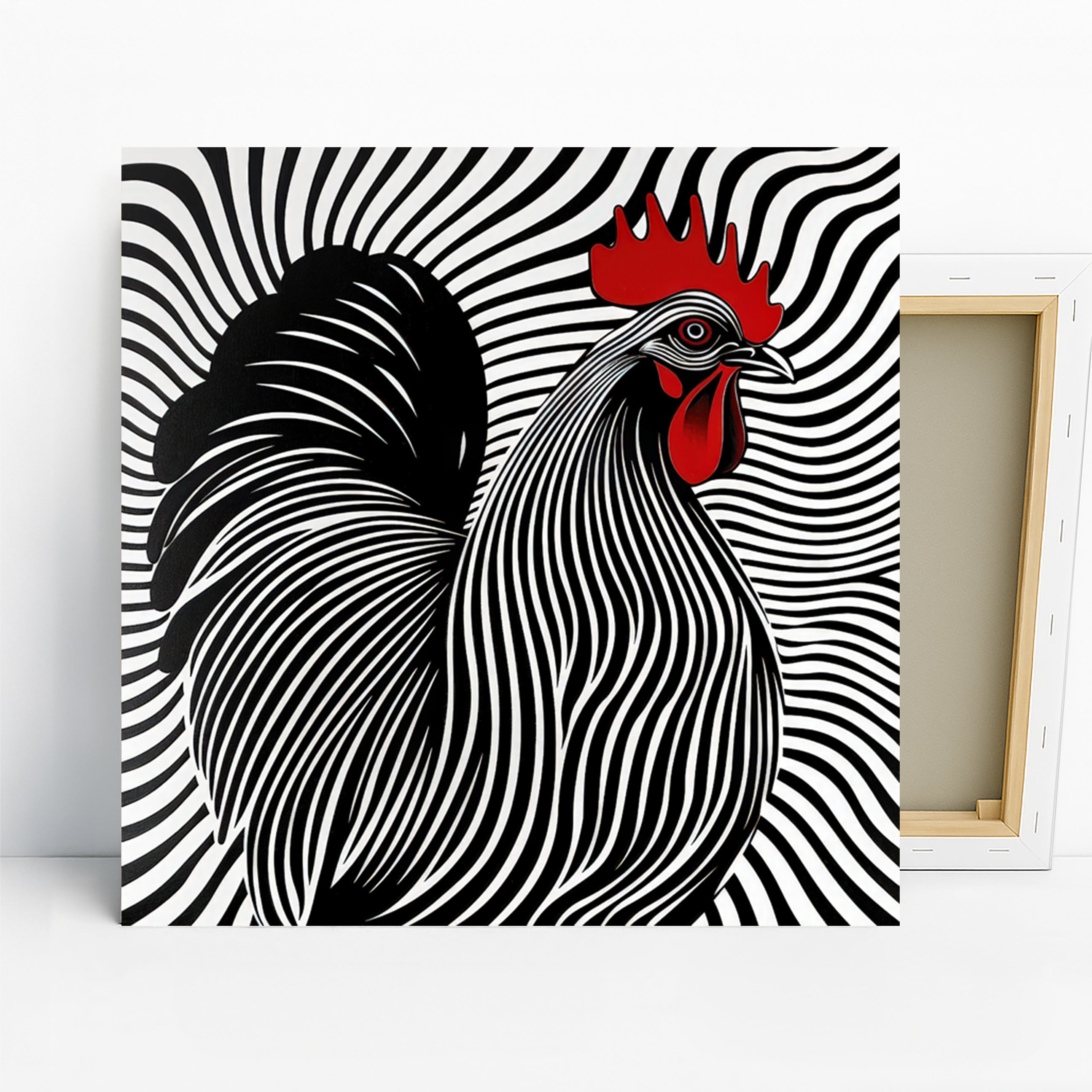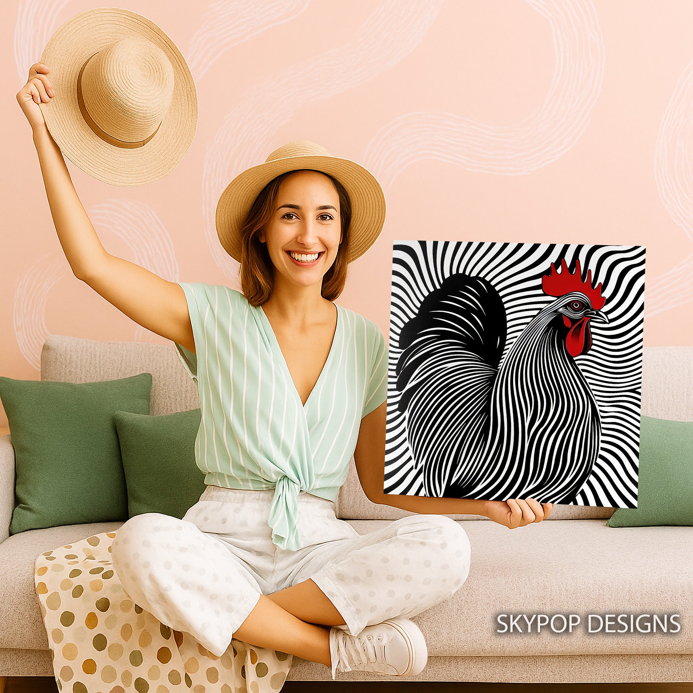 Keywords: Pop Art, Contemporary Art, Minimalism Art, Modern Decor, Minimalist Decor, Contemporary Decor, Living Room Art, Office Art, Bedroom Art, Entryway Decor, Black and White Art, Red Accent, Rooster Art, Bold Rooster Art, Stripes Art, Animal Wall Art, Modern Art, Graphic Art, Canvas Wall Art, Poster Art, Wall Decor, Home Decor, Interior Design, Statement Piece, Housewarming Gift, Birthday Gift, Holiday Gift, Vibrant Art, Graphic Design, Artistic Vision
