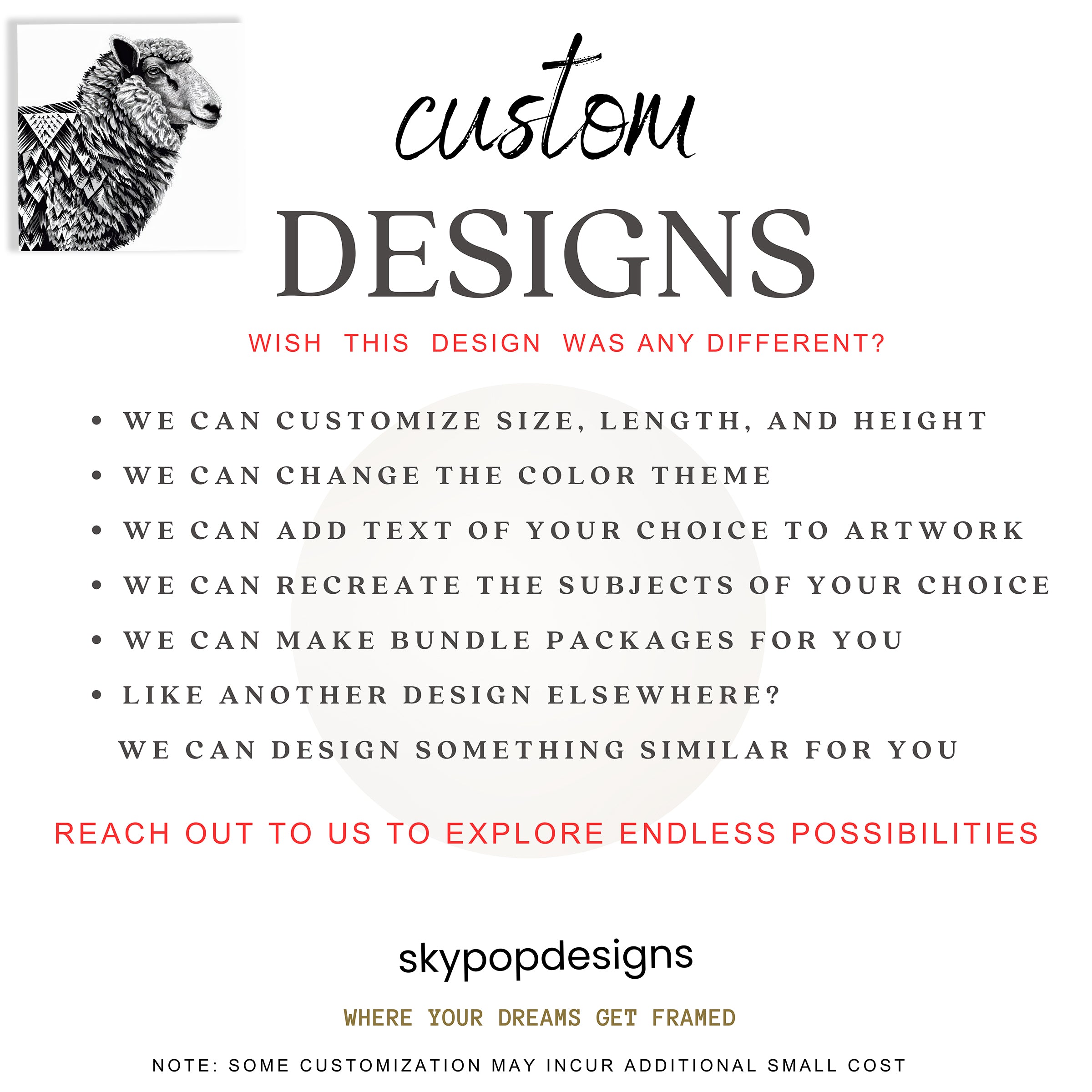 Looking for a custom design, or do you love a particular design but need it in a different size or orientation? Perhaps you've found a design elsewhere and wish for us to create something similar for you? Drop us a message! We're dedicated to meeting your needs and will work closely with you to ensure your vision comes to life.