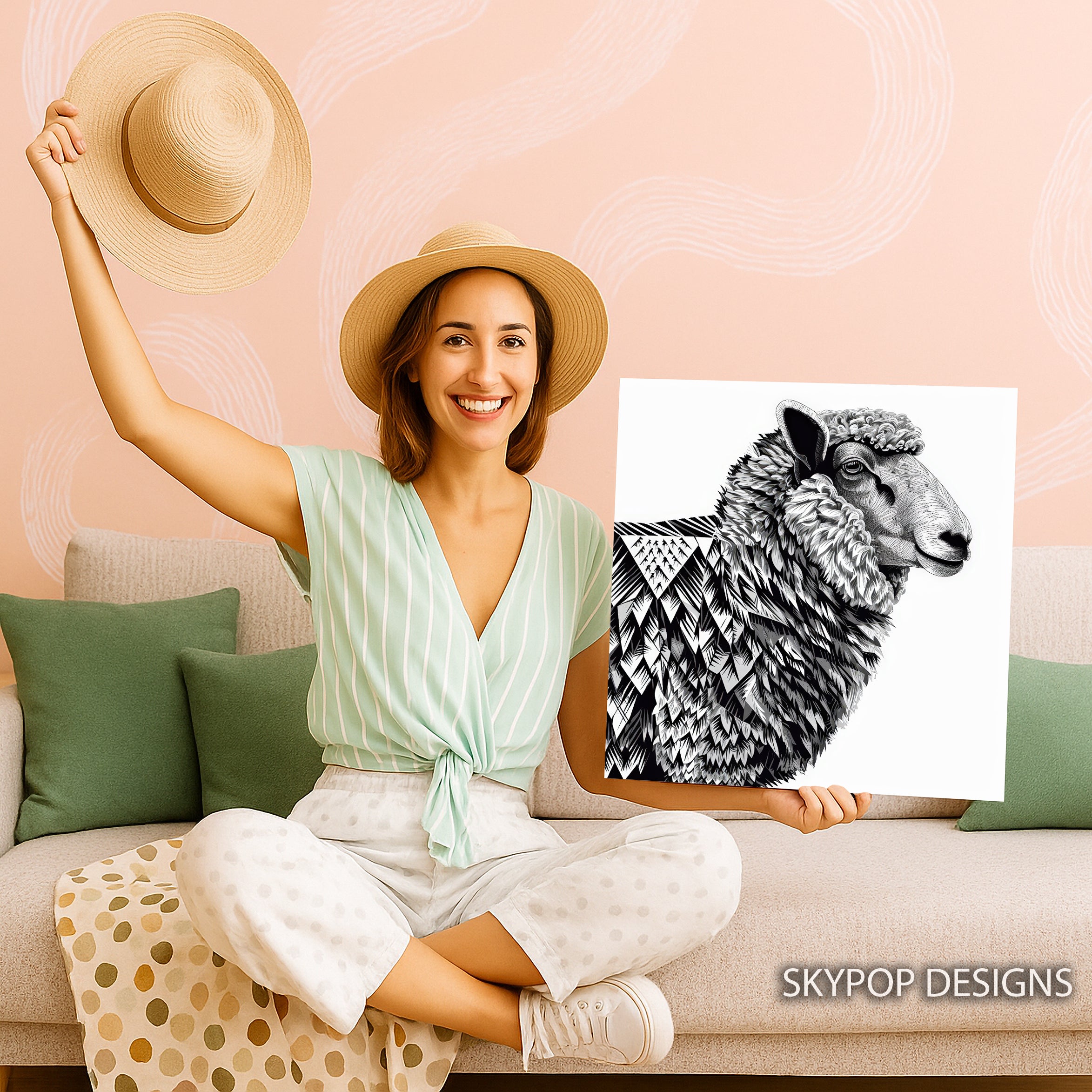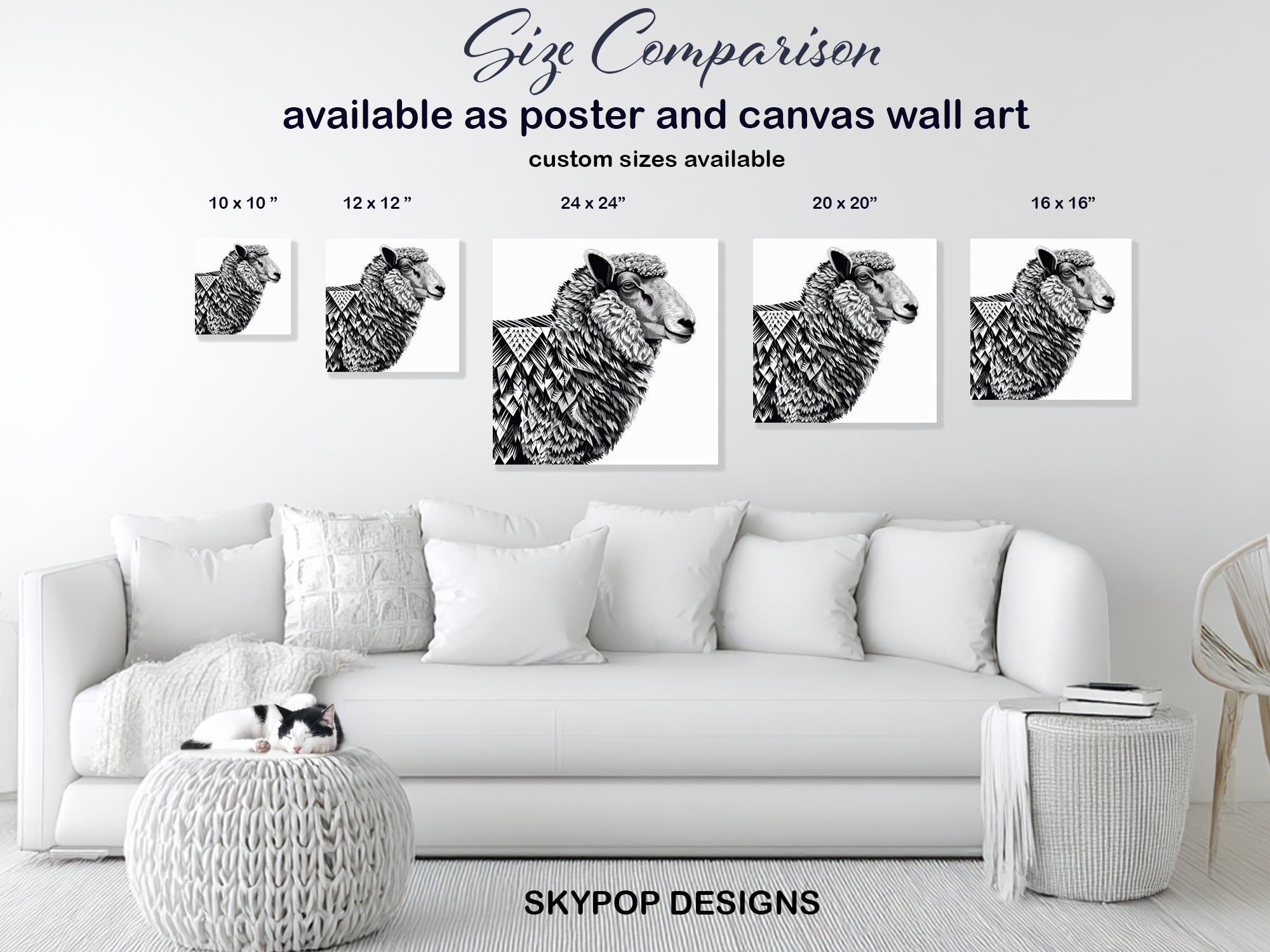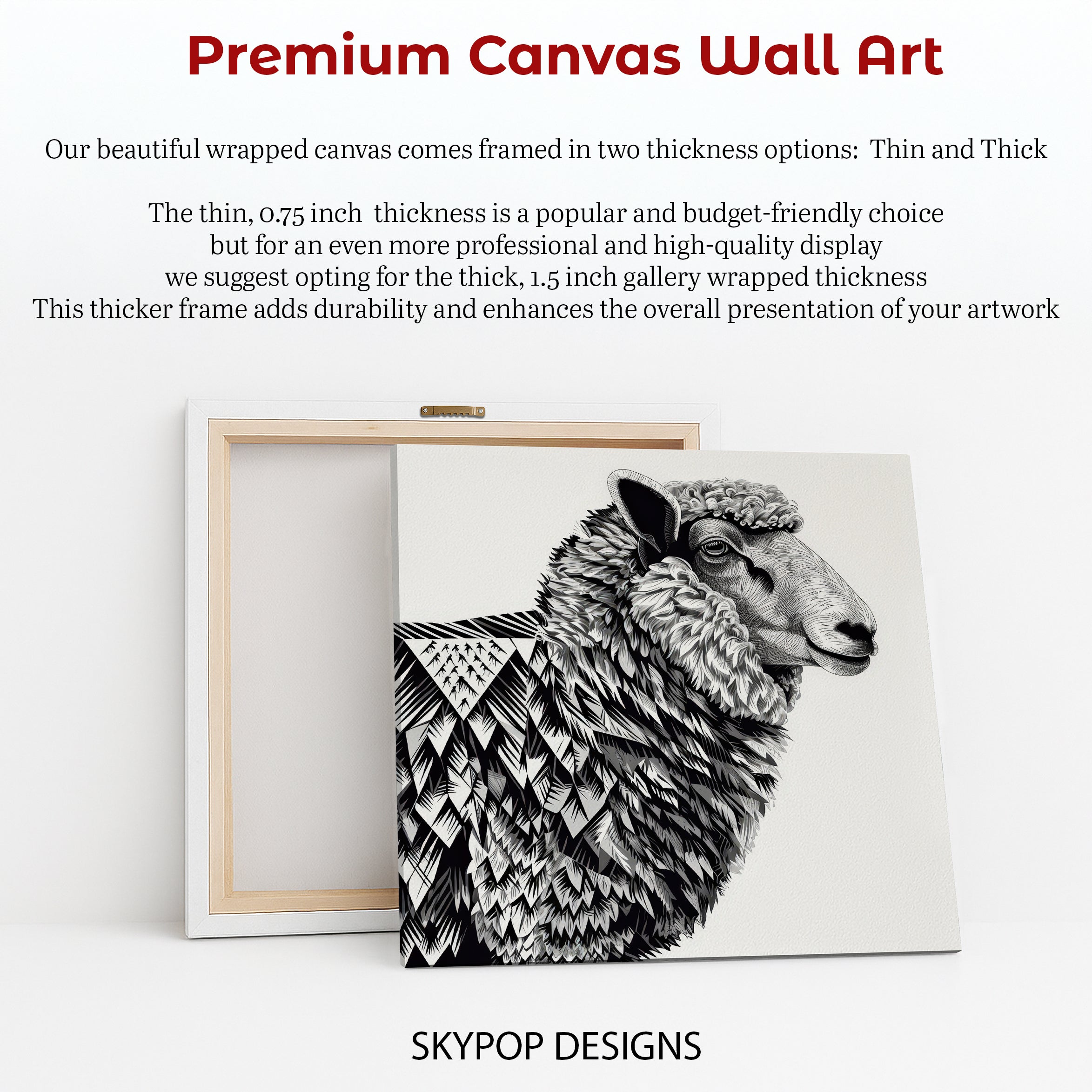 Keywords: Sheep Wall Art, Geometric Sheep Art, Black and White Art, Contemporary Canvas, Modern Home Decor, Minimalist Wall Art, Animal Portrait, Nature Inspired Art, Living Room Art, Bedroom Art, Office Decor, Entryway Art, Sheep Poster, Modern Art Print, Farmhouse Chic, Scandinavian Decor, Abstract Animal Art, Line Art Sheep, Canvas Wall Decor, Home Interior Design, Wall Art for Sale, Unique Artwork, Art Gift Ideas, Housewarming Gift, Birthday Gift, Black and White Sheep, Monochrome Art, Textured Canvas, Gallery Wall Art, Statement Piece