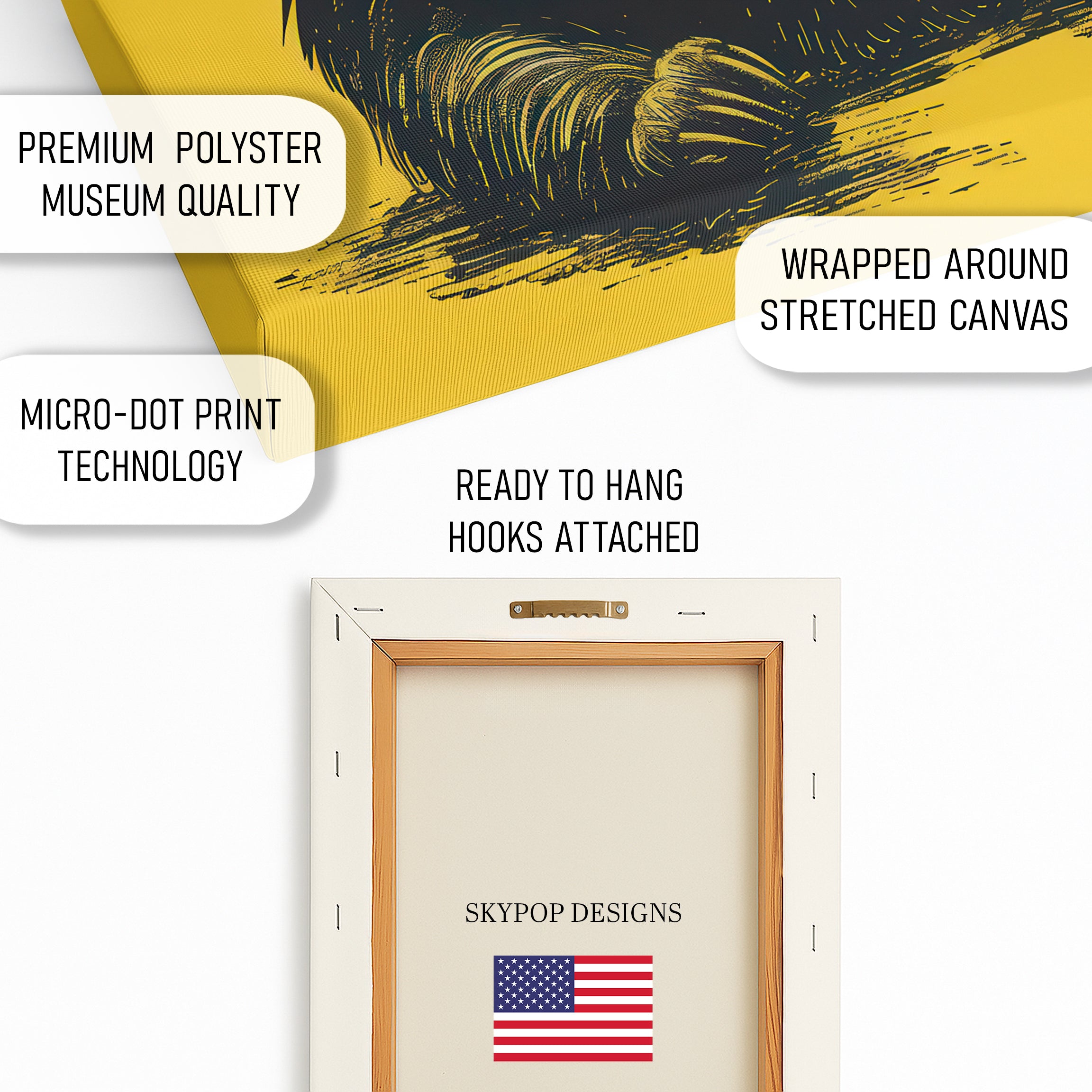 Transform your space with this unique sloth canvas wall art, showcasing a charming sloth serenading with a guitar. This captivating poster art brings a playful yet stylish vibe to any room, blending whimsical animal art with contemporary design. The striking yellow background and detailed black and white illustration of the sloth create a visually engaging piece that's perfect for modern or bohemian decor styles. Elevate your living room, bedroom, or office with this delightful canvas wall art, offering a burst of personality and a touch of serene joy. This poster is ideal for music lovers or anyone who appreciates unique animal art, adding a conversation-starting element to your wall decor. The detailed linework and bold color contrast make this artwork a standout piece, suitable for various interior designs. It makes a fantastic gift for birthdays, housewarmings, or holidays, bringing a smile to anyone's face. High-quality printing ensures the vibrant yellow and intricate details of the sloth and guitar are beautifully preserved. Enhance your home's atmosphere with this charming sloth canvas art, a perfect addition to create a cozy and inviting personal space. This versatile wall art adds character to any wall. Bring a touch of whimsical music and cheerful energy into your home with this fantastic sloth poster today.