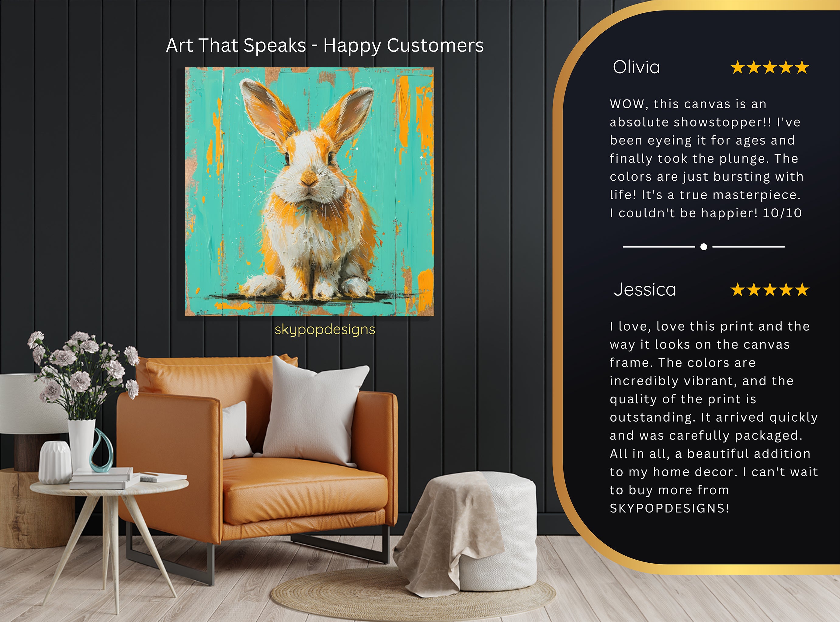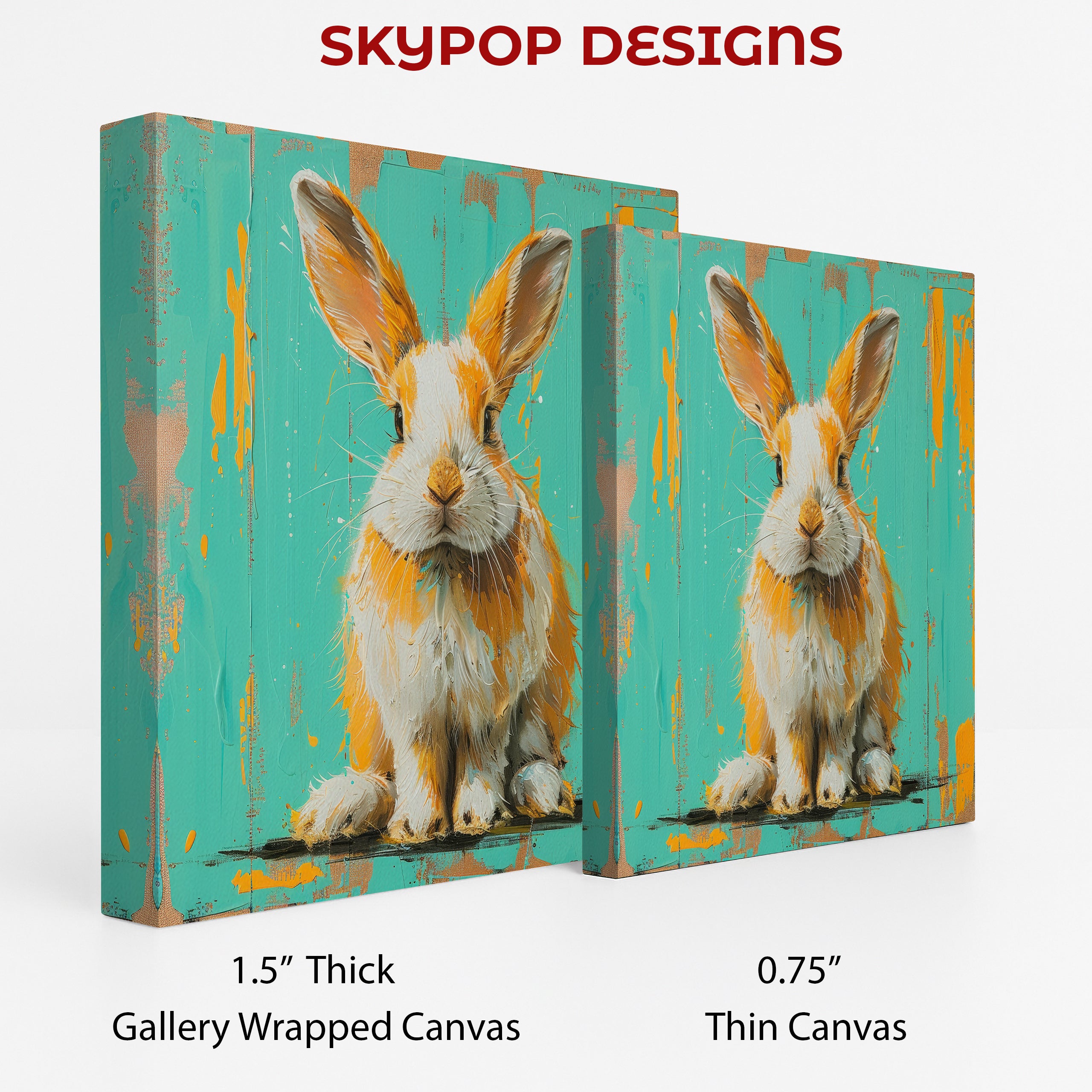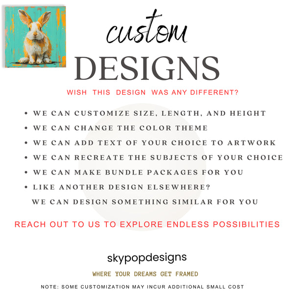 Keywords: Whimsical Art, Contemporary Art, Animal Art, Modern Decor, Scandinavian Decor, Bohemian Decor, Living Room Art, Bedroom Art, Children's Room Art, Entryway Decor, Turquoise Art, Orange Art, White Art, Brown Art, Bunny Art, Pop Art Poster, Canvas Wall Art, Orange Bunny, Turquoise Backdrop, Modern Art, Playful Art, Textured Art, Joyful Decor, Creative Home, Housewarming Gift, Birthday Gift, Holiday Gift, Home Decor Upgrade, Animal Print, Bunny Poster