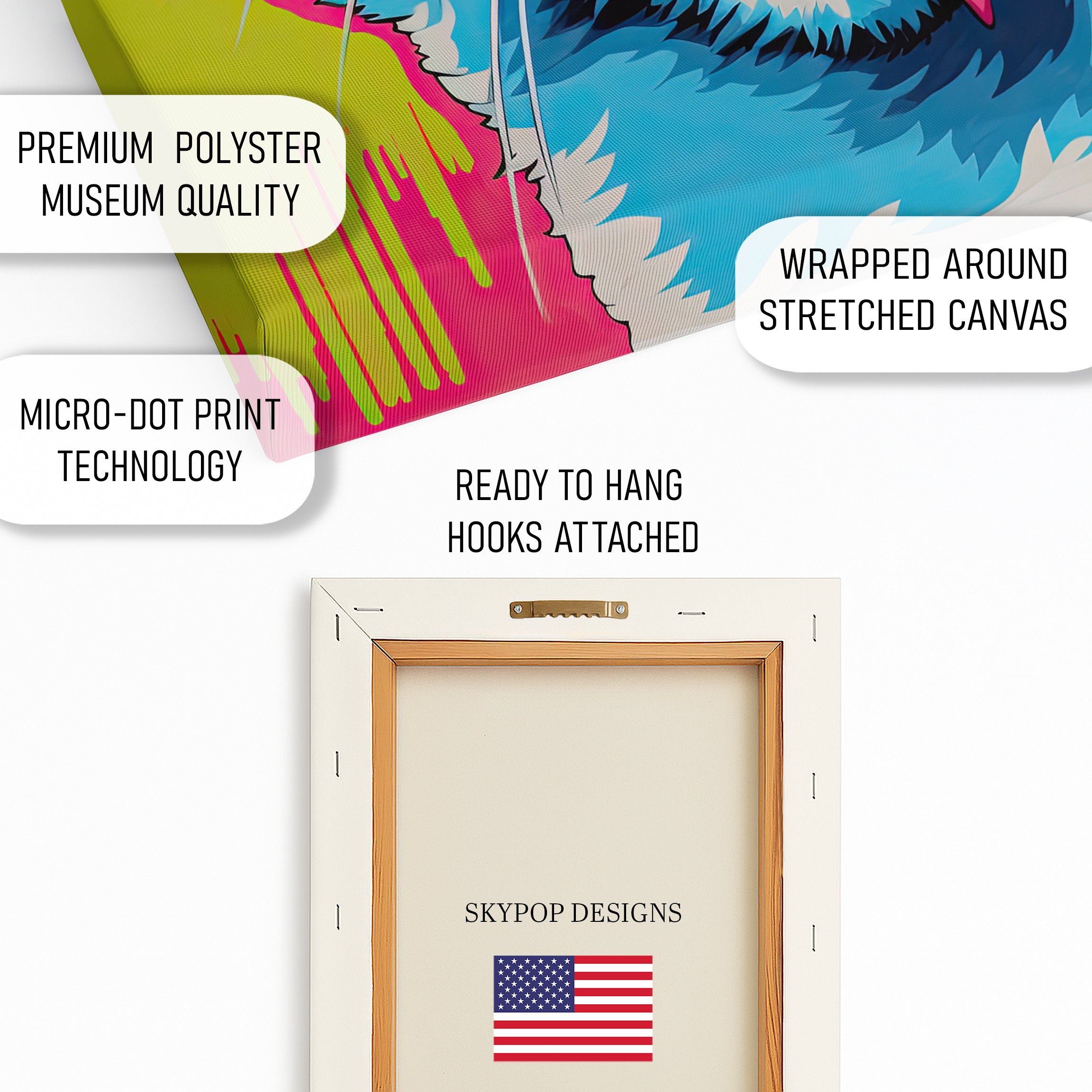 Unleash vibrant energy with this striking cat canvas wall art, a true pop art masterpiece that commands attention. The bold multicolor design, featuring electric pink, neon yellow, and vibrant blue accents, will instantly transform any space. This captivating poster or canvas wall art is perfect for modern living rooms, eclectic bedrooms, or a playful game room aesthetic. The dynamic portrayal of the feline character, with its bright blue eyes and extended pink tongue, injects personality and fun into your home decor. It's an ideal statement piece for those who appreciate contemporary art with a playful edge and anyone seeking to add a pop of color to their walls. This high-quality canvas art celebrates the modern love for pets and bold graphic design, offering a unique way to express your style. Elevate your office space or create a focal point in your entryway with this eye-catching cat print. The striking color palette is known to inspire creativity and uplift moods, making this a fantastic addition to any environment. Whether you're looking for a conversation starter or a way to infuse your home with whimsical charm, this versatile artwork delivers. It's a perfect gift for cat lovers, art enthusiasts, or anyone celebrating a housewarming or birthday. Enhance your home decor with this stunning piece of pop art cat wall art today.