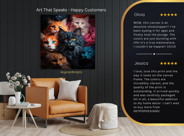 Keywords: Abstract Cat Art, Contemporary Wall Art, Animal Canvas Print, Multicolor Cat Poster, Modern Home Decor, Bohemian Decor, Glam Accent, Living Room Art, Bedroom Wall Decor, Office Art, Entryway Art, Feline Energy Art, Vibrant Cat Collection, Bold Colors Art, Abstract Animal Art, Cat Lover Gift, Housewarming Present, Unique Wall Art, Artistic Cat Poster, Colorful Canvas Art, Black Blue Orange Art, Dramatic Lighting Art, Textured Wall Art, Conversation Starter Art, Sophisticated Decor, Playful Art Piece, High-Quality Canvas, Pet Enthusiast Gift, Art Collector Addition, Enigmatic Cat Beauty
