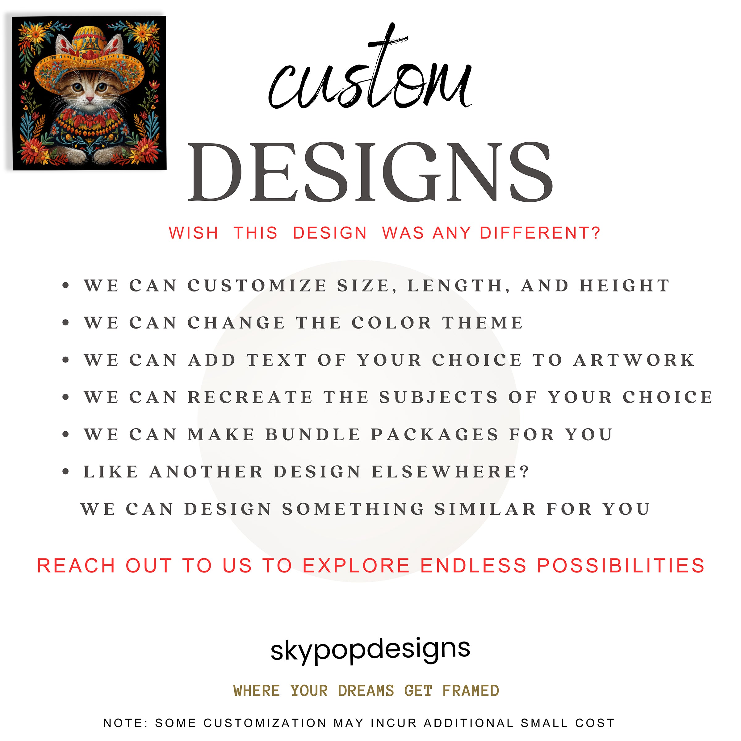 Looking for a custom design, or do you love a particular design but need it in a different size or orientation? Perhaps you've found a design elsewhere and wish for us to create something similar for you? Drop us a message! We're dedicated to meeting your needs and will work closely with you to ensure your vision comes to life.