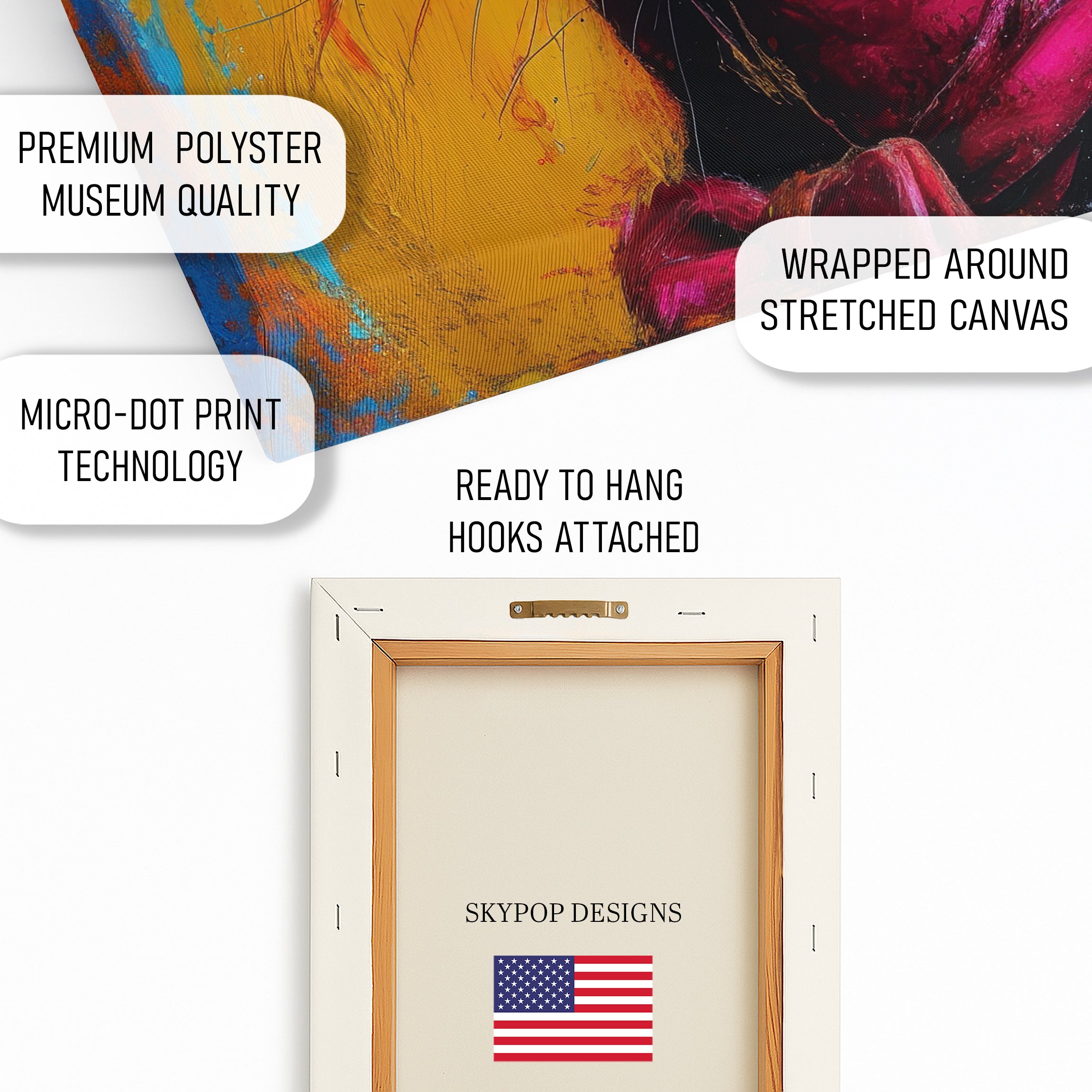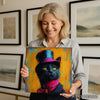 Elevate your walls with this striking black cat canvas wall art, a captivating piece that injects personality into any space. This vibrant poster showcases a dapper black cat adorned with a stylish top hat and scarf, rendered in a bold graffiti and pop art style. The rich yellow and multicolor background creates a dynamic contrast, making this animal art a true focal point. Perfect for modern and bohemian living rooms or eclectic bedrooms, this canvas wall art transforms your decor. The striking use of color evokes feelings of creativity and whimsy, adding a joyful mood to your home. This unique artwork is ideal for cat lovers and makes a fantastic gift for birthdays or housewarmings. The textured design and high-quality printing ensure this poster is as durable as it is eye-catching. Add a touch of urban chic to your office or a splash of color to your hallway with this versatile wall art. Embrace the expressive nature of this piece and allow it to inspire conversation and admiration. Transform your home with the charming character of this dapper cat artwork today. Discover the perfect blend of modern design and playful spirit for your wall art collection.