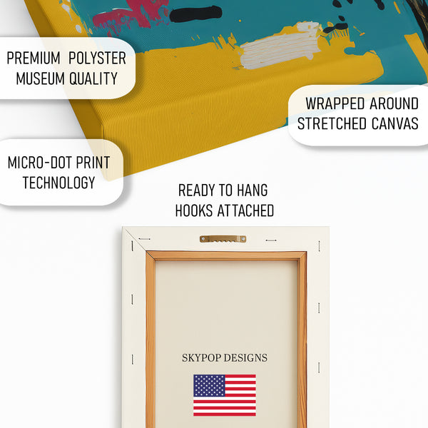 Transform your space with this vibrant abstract cat canvas wall art featuring a striking feline face. The bold strokes of teal, yellow, and black create a contemporary masterpiece that will elevate any room. This eye-catching poster or canvas wall art is perfect for living rooms, bedrooms, or offices, adding a touch of modern artistry. The dynamic composition and playful use of color make this cat artwork a captivating conversation starter. Ideal for those who love unique animal art with a modern edge, this piece enhances bohemian and contemporary decor styles. The bold yellow background radiates energy and warmth, while the abstract cat design adds personality and charm to your wall decor. This high-quality canvas print captures the intricate details and textured brushwork, bringing the artwork to life. It's a perfect gift for cat lovers or anyone looking to infuse their home with vibrant, modern wall art. Discover how this stunning abstract cat poster can transform your living space into a stylish sanctuary. Celebrate your love for animals with this expressive and artistic canvas statement piece. Elevate your home decor with this unique blend of abstract art and animal portraiture today.