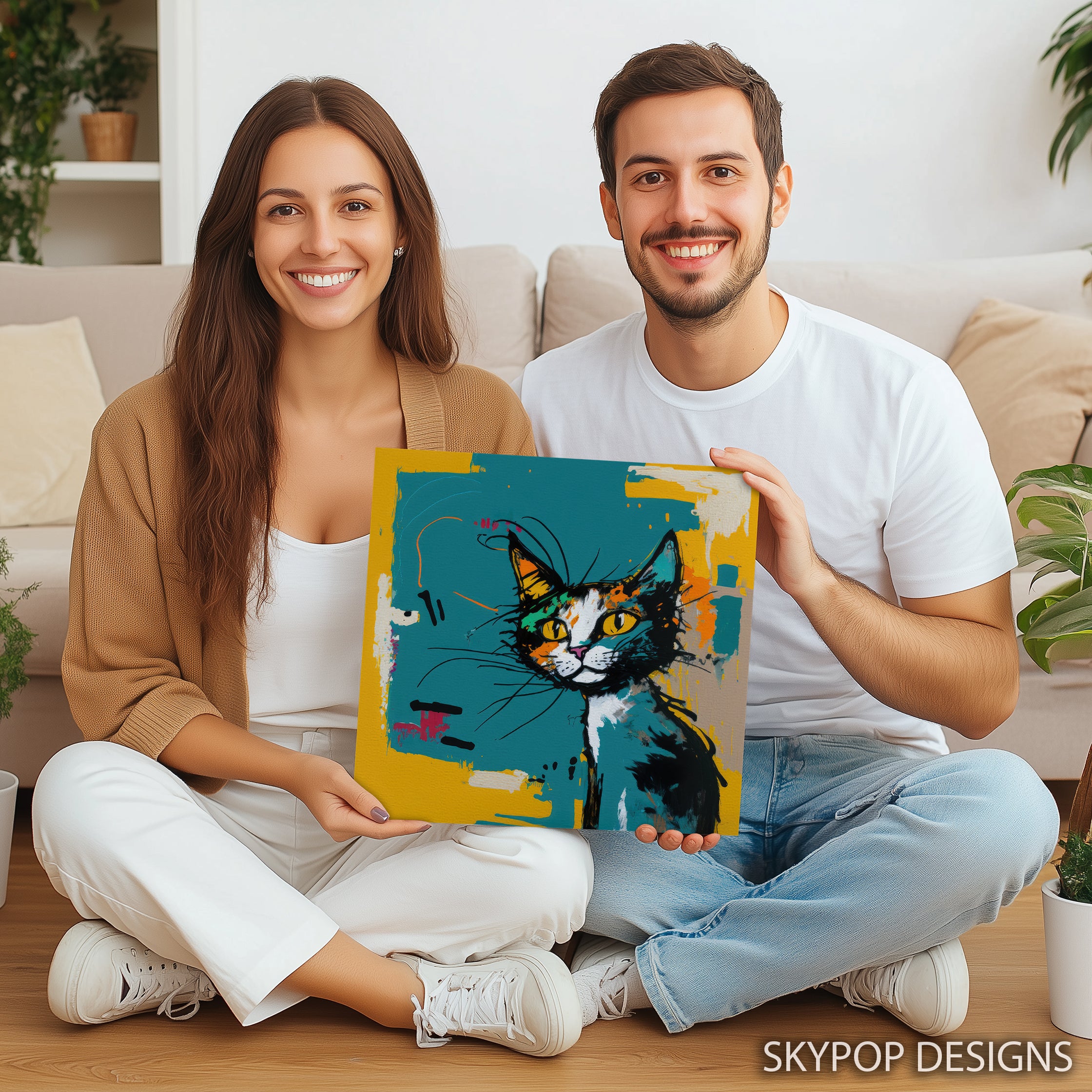 Keywords: Abstract Cat Art, Canvas Wall Art, Modern Art, Contemporary Decor, Bohemian Style, Teal Yellow Black White, Living Room Art, Bedroom Decor, Office Wall Art, Entryway Art, Animal Art, Pop Art, Cat Face Art, Vibrant Wall Art, Statement Piece, Home Decor, Wall Art Poster, Abstract Painting, Modern Cat Art, Unique Artwork, Feline Face Art, Colorful Canvas, Textured Brushwork, Art Print, Gift for Cat Lovers, Modern Living Space, Stylish Sanctuary, Expressive Art, Artistic Canvas, Wall Decor