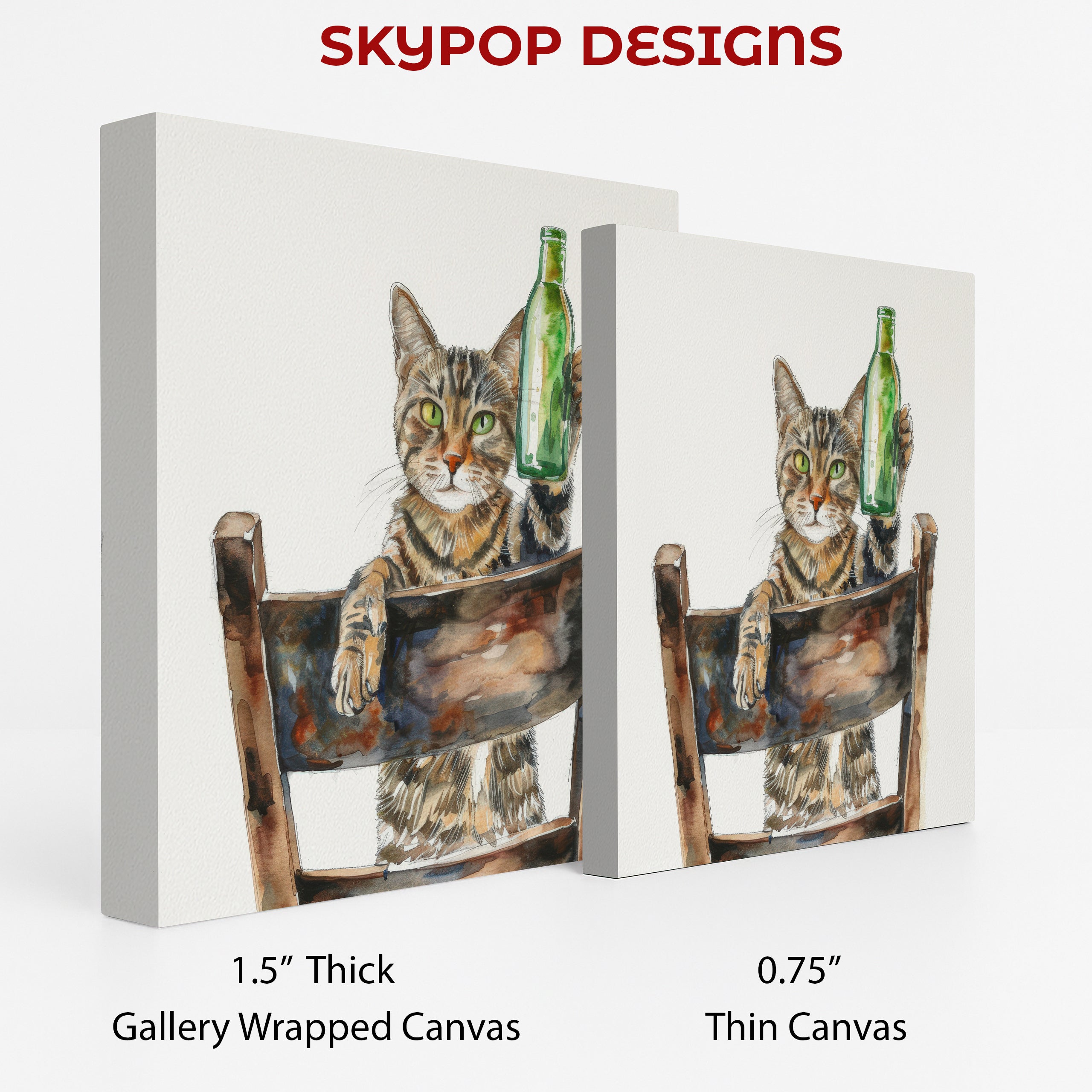 Bring personality and charm to your walls with this unique cat canvas wall art. Featuring a whimsical tabby cat casually holding a green bottle, this piece adds a touch of playful sophistication to any space. The eye-catching composition and vibrant colors transform your living room, office, or bedroom into a warm and inviting atmosphere. This canvas art or poster is perfect for cat lovers seeking to elevate their modern or bohemian decor. The striking image captures a moment of whimsical abandon, making it a fantastic conversation starter and a delightful addition to your home decor. Its versatile design makes it ideal for a cozy reading nook or as a statement piece in a living room. The quality printing ensures that the detailed brushstrokes and the cat's expressive green eyes are vividly showcased. This piece is a thoughtful gift for housewarmings, birthdays, or holidays, bringing smiles and a touch of quirky charm. Enhance your home's aesthetic with this captivating animal art that embodies a relaxed and joyful spirit. Elevate your wall decor collection with this distinctive cat poster, a perfect blend of art and personality for any room. Transform your space today with this delightful and highly appealing piece of wall art.