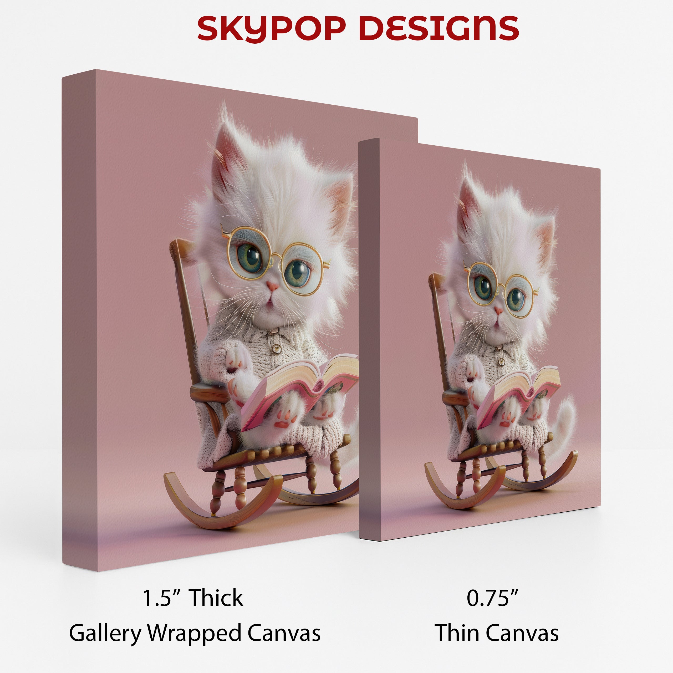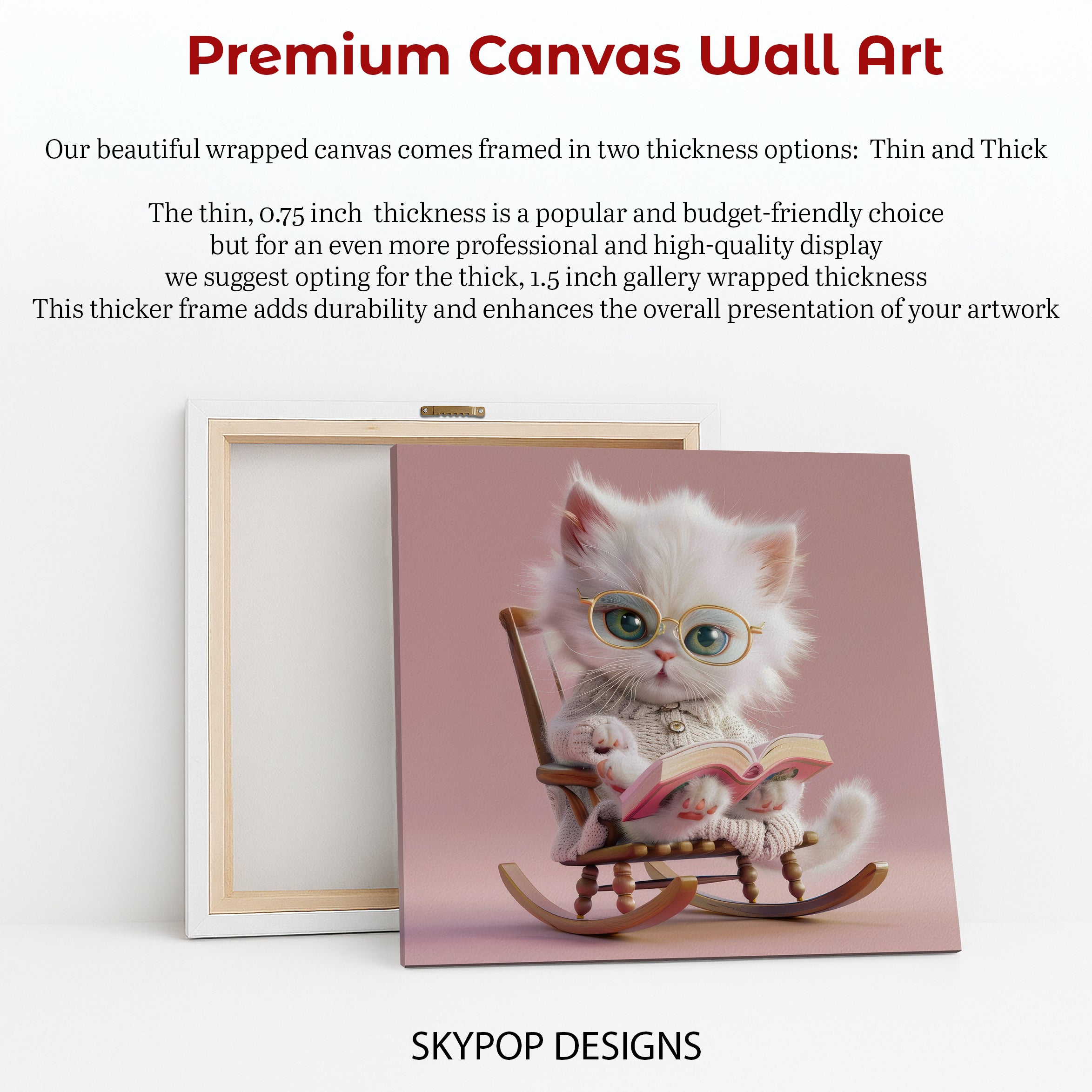 Invite charm and warmth into your home with this delightful cat canvas wall art featuring a fluffy white cat engrossed in a book. This captivating poster showcases a whimsical scene, perfect for cat lovers and anyone seeking cozy home decor. The gentle pink background and the cat's studious expression create a serene atmosphere, ideal for transforming your bedroom or children's room into a peaceful sanctuary. As a versatile piece of wall art, it complements bohemian and farmhouse decor styles, adding a touch of playful sophistication. The intricate details, from the cat's charming glasses to its cozy knitted sweater, make this canvas wall art a truly unique find. This beautiful artwork is perfect for elevating your living room or nursery, bringing a sense of comfort and joy. The muted color palette of white, beige, and pink hues offers a calming visual experience, promoting relaxation and tranquility. Gift this stunning cat poster to friends and family for housewarmings, birthdays, or holidays to share a little bit of cozy happiness. High-quality canvas printing ensures vibrant colors and lasting detail, making this a cherished addition to any home. Enhance your wall decor with this heartwarming cat reading a book, an art piece that celebrates simple pleasures and storybook fantasy. Bring this enchanting cat canvas art home to create a captivating focal point that will be admired by all.