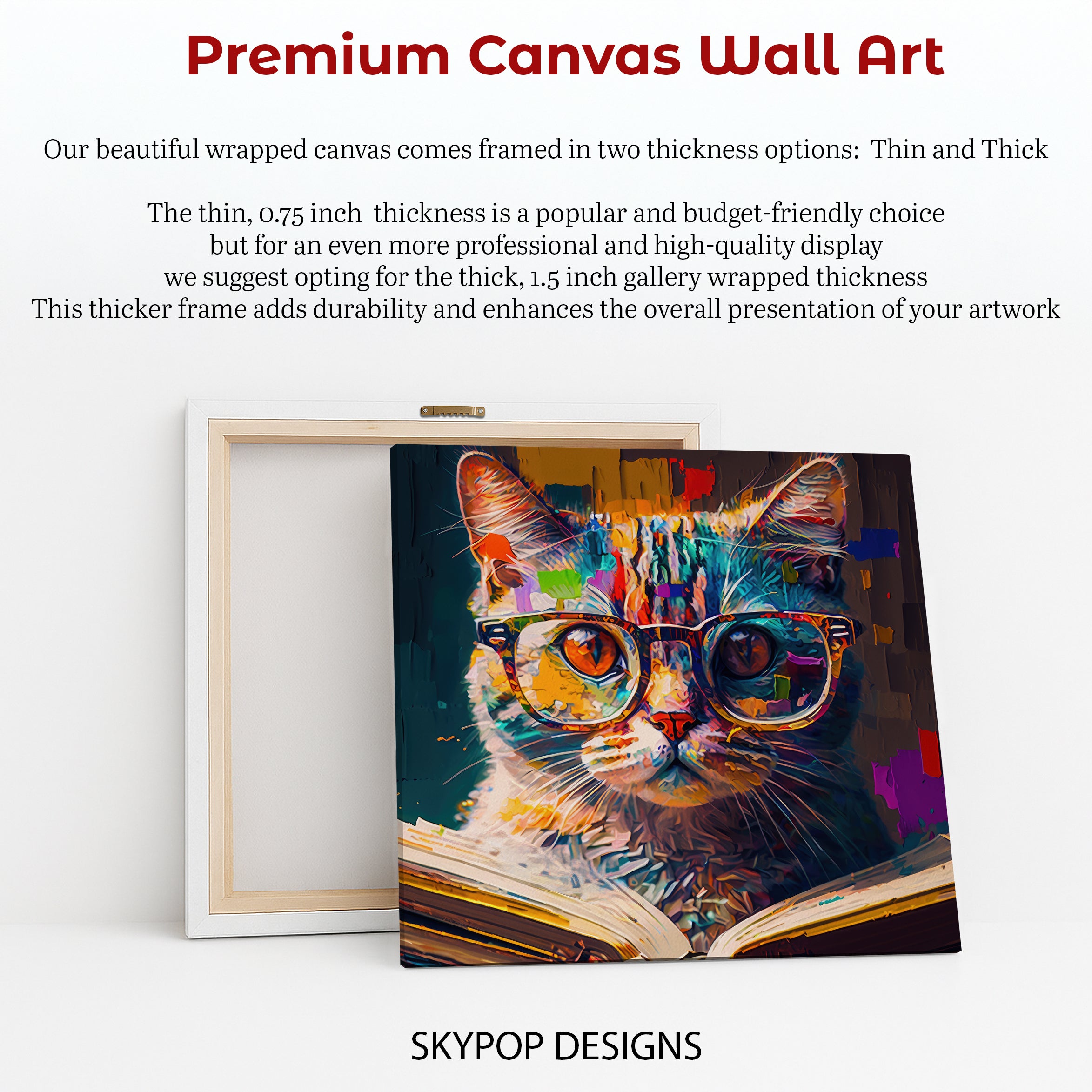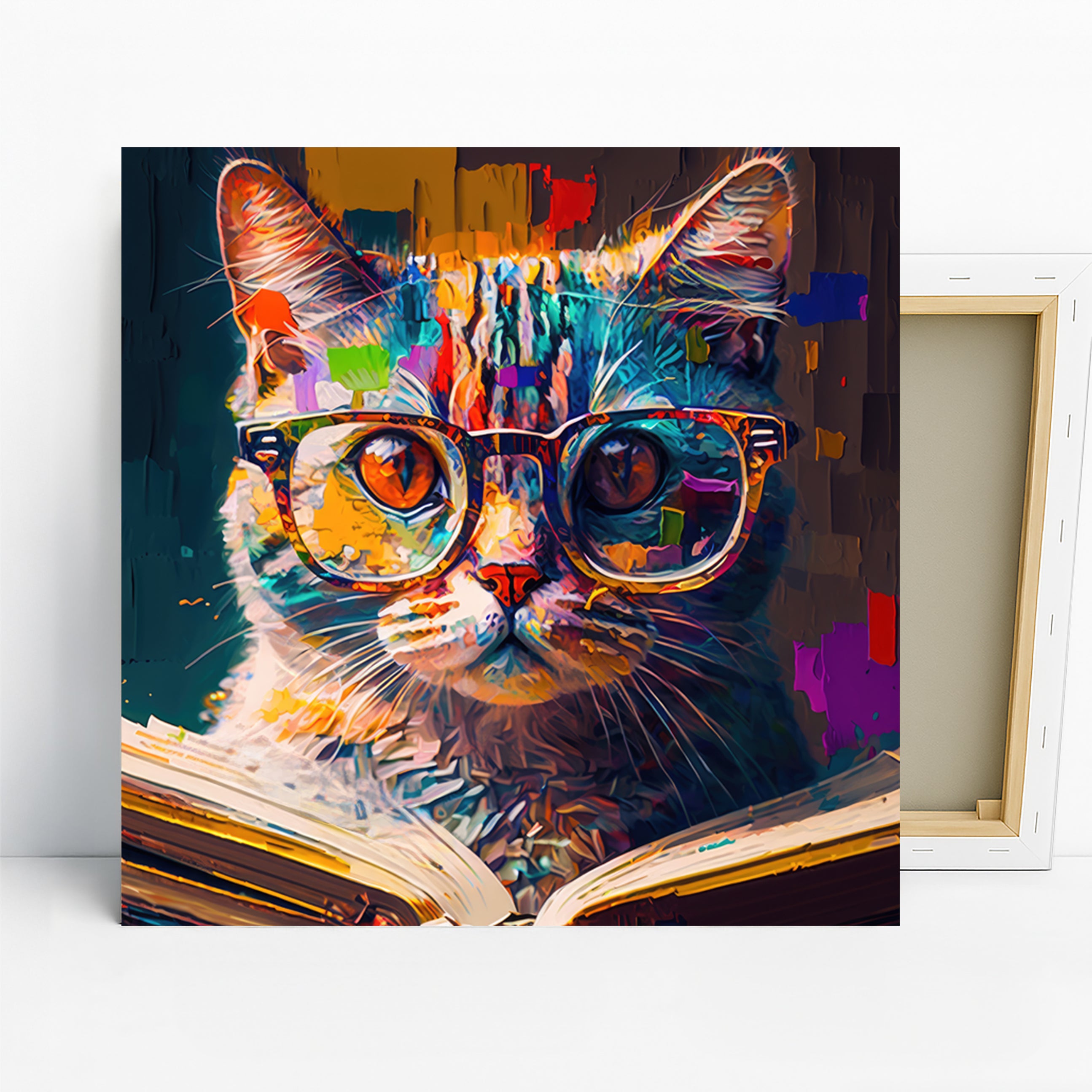 Transform your space with this vibrant canvas wall art featuring a studious cat engrossed in a book. The bold colors and abstract brushstrokes of this poster art create a captivating focal point, perfect for adding personality to any room. This unique artwork celebrates the joy of reading and brings a touch of whimsical charm to your home decor, making it ideal for modern living rooms, cozy bedrooms, or a dedicated office space. The striking multicolor palette evokes a lively and energetic mood, while the cat's glasses add a touch of intellectual flair. This canvas wall art is a wonderful addition to bohemian or minimalist interiors, offering a pop of color and a conversation starter. The high-quality print showcases rich textures and intricate details, ensuring this poster looks stunning on your wall. Whether you're looking for a unique piece of cat wall art or a striking addition to your book-themed decor, this canvas print delivers. It's a perfect gift for book lovers, cat enthusiasts, or anyone looking to elevate their home with eye-catching wall art. Enhance your home with this inspiring artwork that brings together art and everyday life. Make this colorful cat poster the centerpiece of your collection and add a touch of creative energy to your walls today.