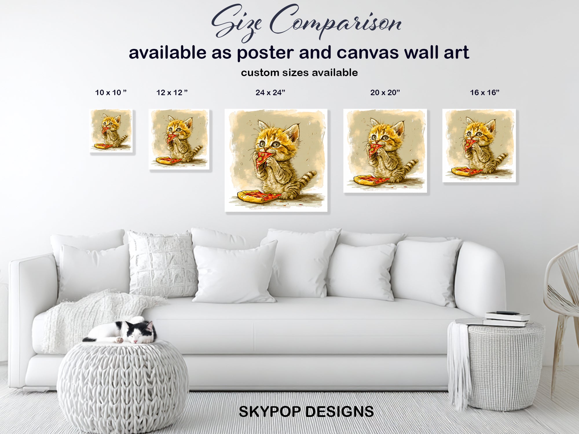 Keywords: Whimsical Art, Animal Art, Pop Art, Contemporary Decor, Bohemian Decor, Modern Decor, Living Room Art, Kitchen Wall Art, Children's Room Decor, Bedroom Wall Art, Multicolor Art, Beige Decor, Brown Art, Yellow Accents, Cat Lover Gift, Kitten Art Print, Pizza Art, Funny Pet Art, Cartoonish Art, Playful Home Decor, Happy Home Decor, Unique Wall Art, Canvas Wall Art, Poster Print, Cat Poster, Foodie Decor, Quirky Home Decor, Birthday Gift Idea, Housewarming Gift, Cozy Atmosphere