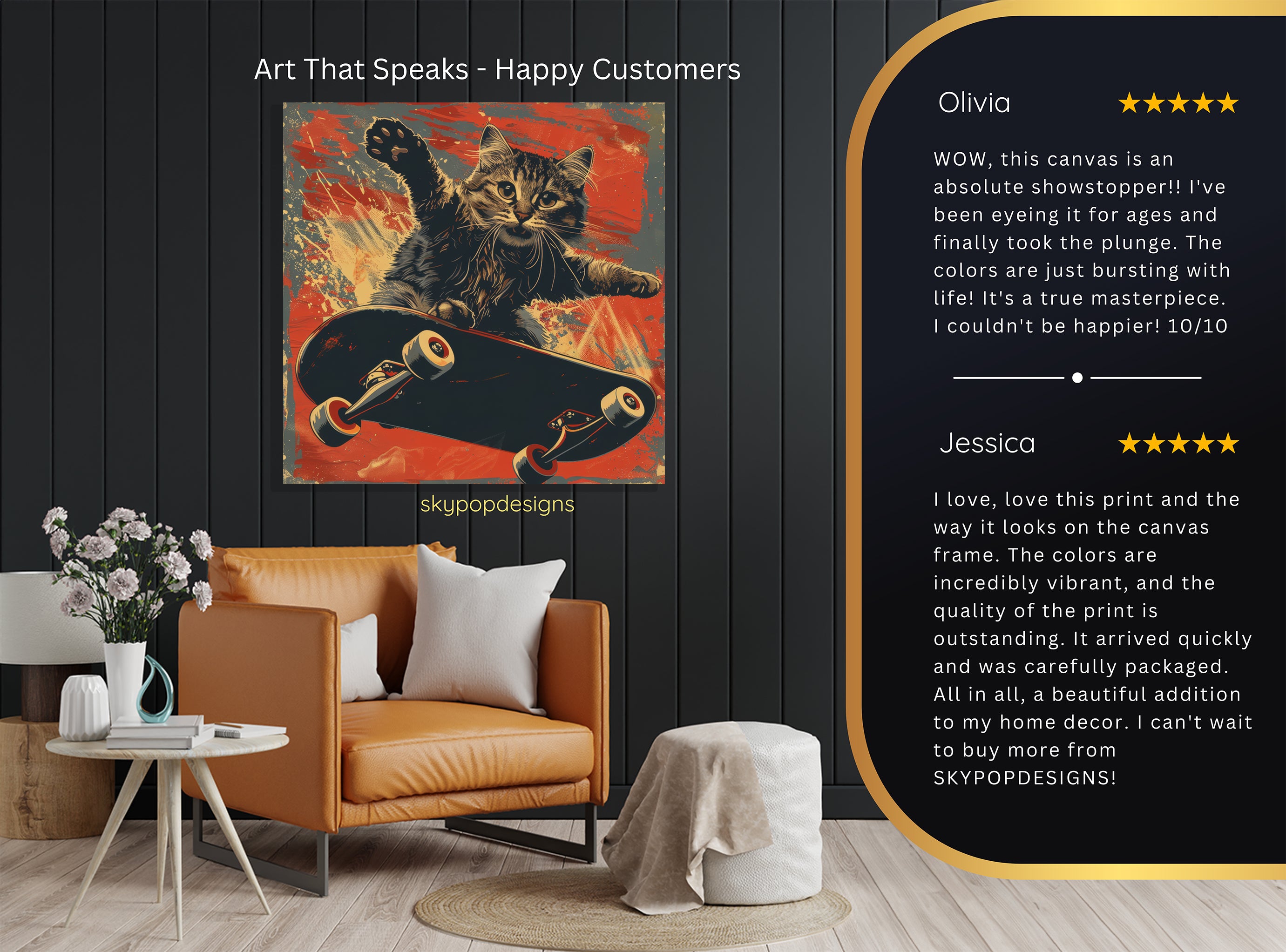 Keywords: Skater Cat Art, Graffiti Wall Art, Pop Art Canvas, Modern Decor, Bohemian Art, Urban Style, Cat Poster, Multicolor Art, Red Black Grey Art, Living Room Canvas, Game Room Decor, Office Wall Art, Children's Room Decor, Animal Wall Art, Skateboard Art, Street Art Print, Canvas Wall Art, Feline Art, Quirky Decor, Unique Home Decor, Birthday Gift Idea, Housewarming Present, Holiday Gift Art, Cool Cat Poster, Edgy Wall Art, Contemporary Art Print, Vibrant Wall Decor, Abstract Background Art, Cat Lover Gift, Interior Design Accent