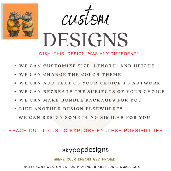 Keywords: Hippo Wall Art, Canvas Print, Whimsical Art, Figurative Art, Contemporary Art, Bohemian Decor, Modern Decor, Minimalist Decor, Living Room Art, Bedroom Art, Kitchen Art, Children's Room Art, Orange Art, Yellow Art, Multicolor Art, Grey Art, Animal Art, Hippopotamus Art, Flower Art, Adorable Art, Playful Art, Stylish Art, Home Decor, Wall Decor, Gift for Animal Lover, Housewarming Gift, Birthday Gift, Nature Art, Friendship Art, Cheerful Home