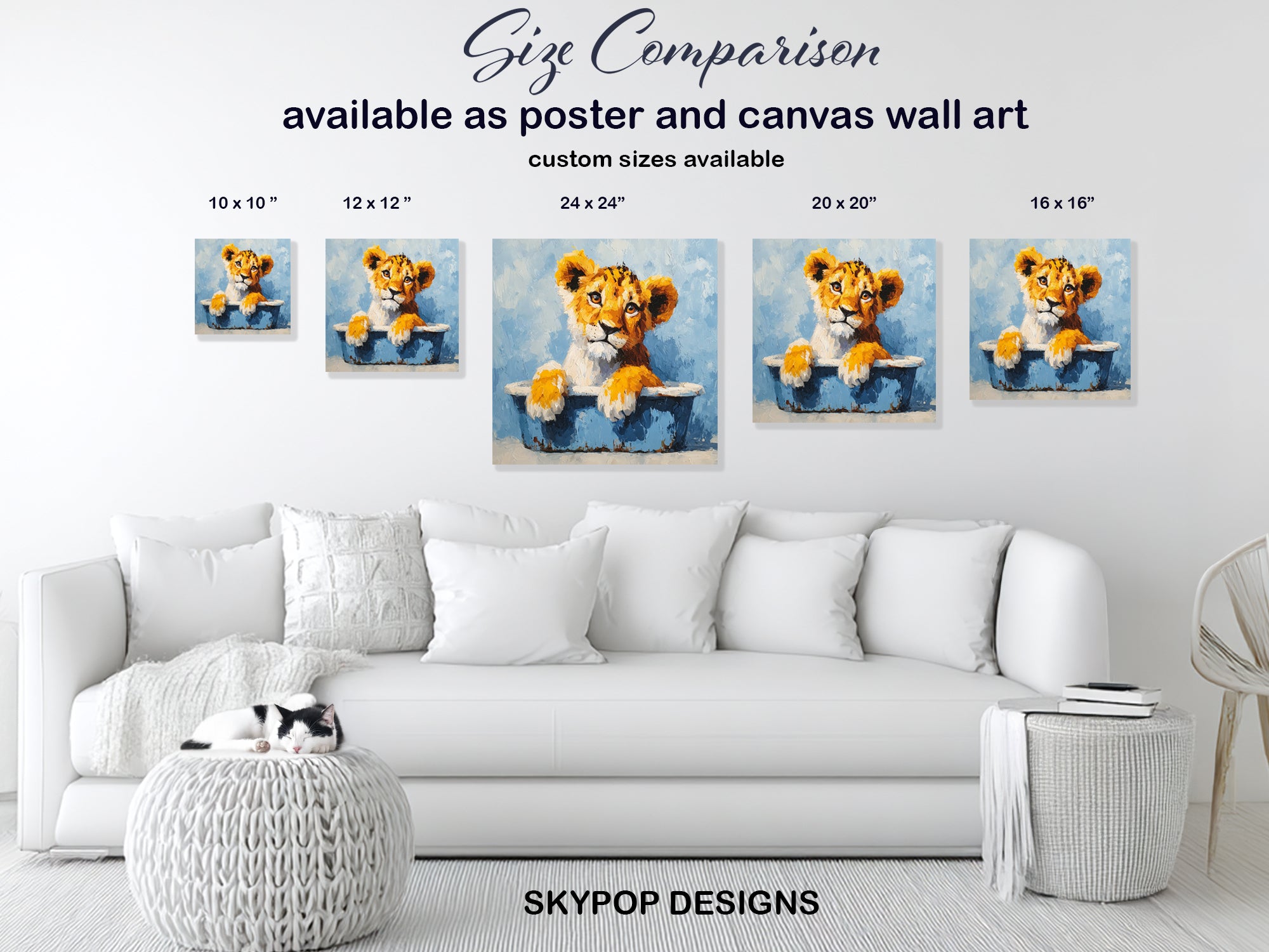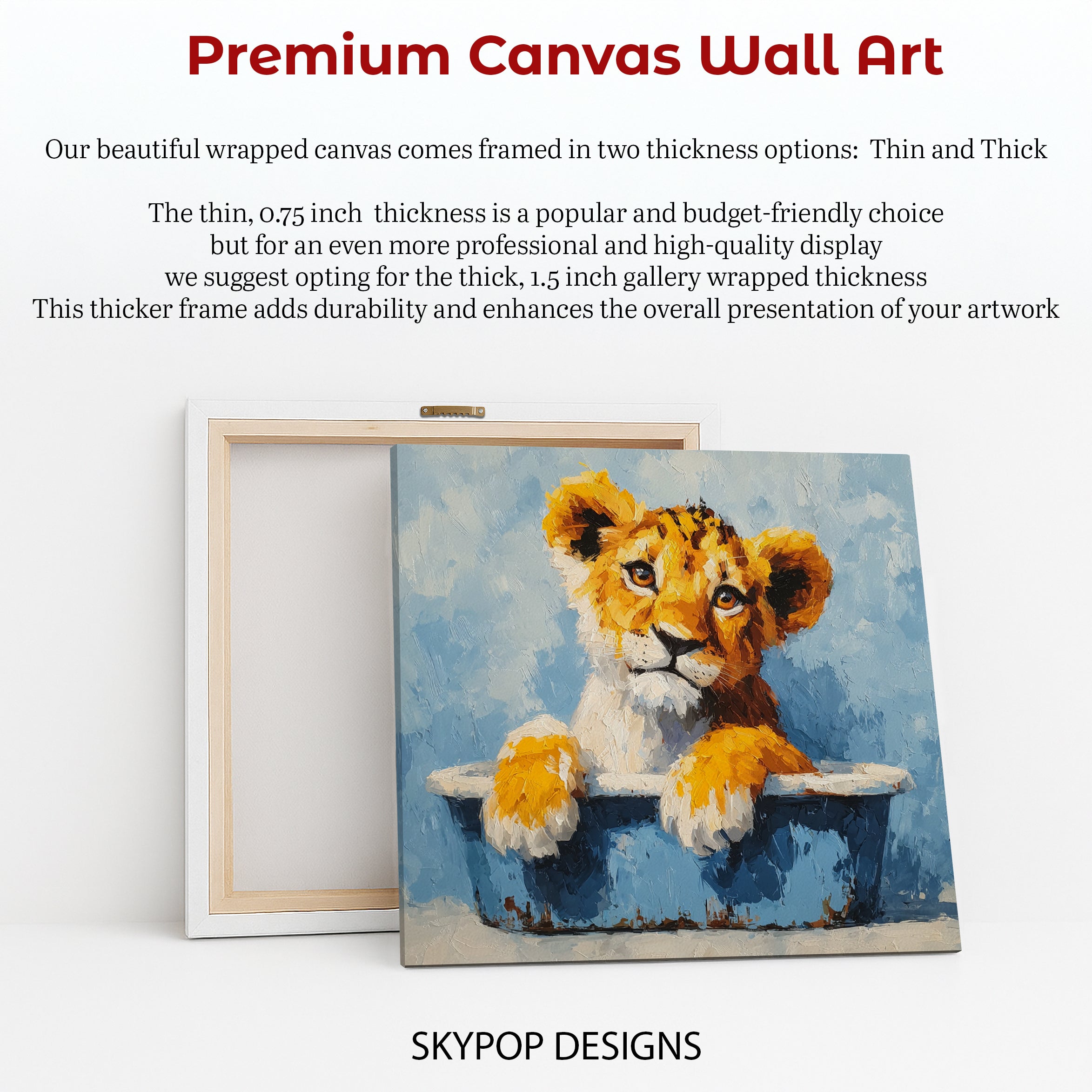Keywords: Lion Cub Art, Canvas Wall Art, Animal Art, Children's Room Decor, Nursery Art, Bedroom Artwork, Living Room Style, Modern Decor, Bohemian Art, Farmhouse Style, Blue Orange Art, Multicolor Print, Lion Cub Bath, Whimsical Art, Contemporary Canvas, Wildlife Art, Animal Lovers Gift, Baby Lion Poster, Cute Animal Decor, Home Aesthetic, Wall Decor Print, Playful Spirit Art, Joyful Artwork, Rustic Blue Art, Vibrant Orange Fur, Heartwarming Scene, Nature Art, Housewarming Gift, Birthday Present, Animal Wall Decor