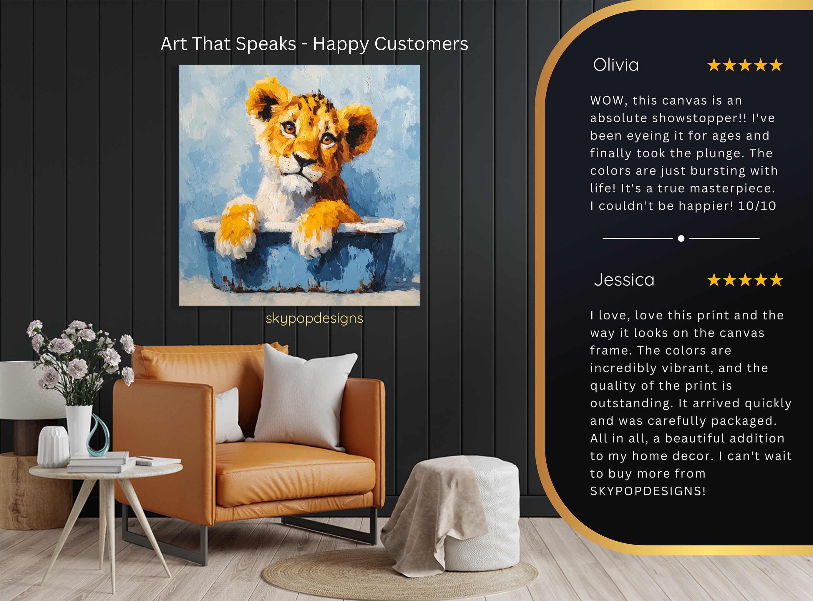 At SKYPOPDESIGNS, we specialize in high-quality canvas and poster prints designed to bring sophistication and style to your space. Please note that our designs are not created with 3D textures or as original oil, acrylic, or watercolor paintings; they are instead HD reproductions of original artwork. This approach allows us to offer these visually stunning pieces at competitive prices, ensuring you receive top-tier, maintenance-free art that's easy to enjoy.