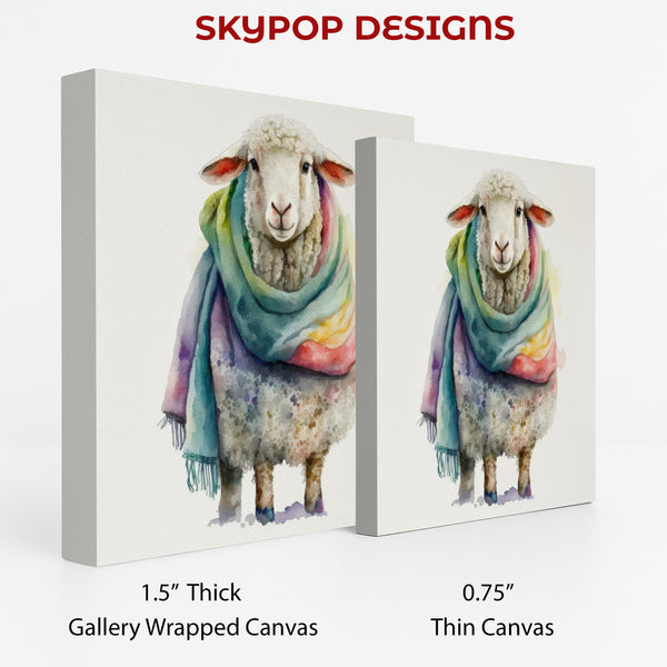 Keywords: Sheep Wall Art, Rainbow Scarf Art, Animal Canvas Print, Watercolor Sheep Art, Whimsical Art Decor, Cozy Rainbow Art, Bohemian Decor, Farmhouse Art, Scandinavian Style, Living Room Art, Bedroom Decor, Nursery Wall Art, Children's Room Art, Multicolor Wall Art, Teal Accent Art, Pink Touches Decor, Cute Sheep Painting, Farm Animal Art, Nature Inspired Art, Housewarming Gift Idea, Cheerful Home Decor, Warm Positivity Art, Gentle Joy Artwork, High Quality Canvas, Art Poster Design, Unique Wall Decor, Animal Lover Gift, Seasonal Decor Accent, Soft Line Art, Charming Sheep Print