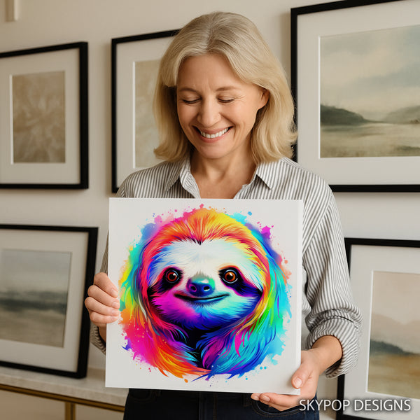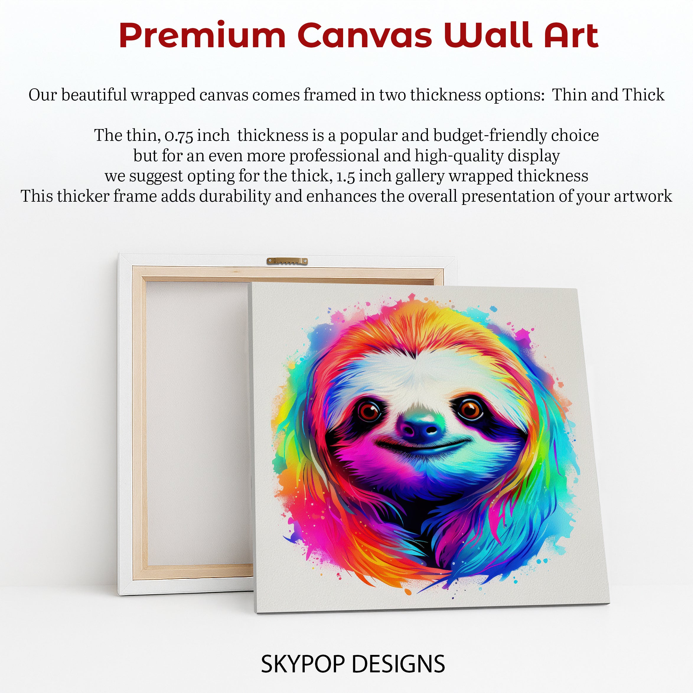 Keywords: Rainbow Sloth Canvas Art, Sloth Wall Art, Animal Art Print, Multicolor Canvas, Contemporary Sloth Art, Pop Art Sloth, Modern Bohemian Decor, Living Room Wall Art, Bedroom Wall Art, Children's Room Art, Office Wall Decor, Vibrant Canvas Print, Happy Sloth Poster, Colorful Wall Art, Unique Home Decor, Trendy Artwork, Animal Lover Gift, Birthday Gift Idea, Housewarming Gift, Minimalist Art Accent, Playful Wall Art, Whimsical Art Piece, High-Quality Canvas, Artistic Wall Decor, Statement Wall Art, Relaxing Atmosphere Art, Joyful Home Decor, Boho Chic Art, Contemporary Style Art, Sloth Poster Art