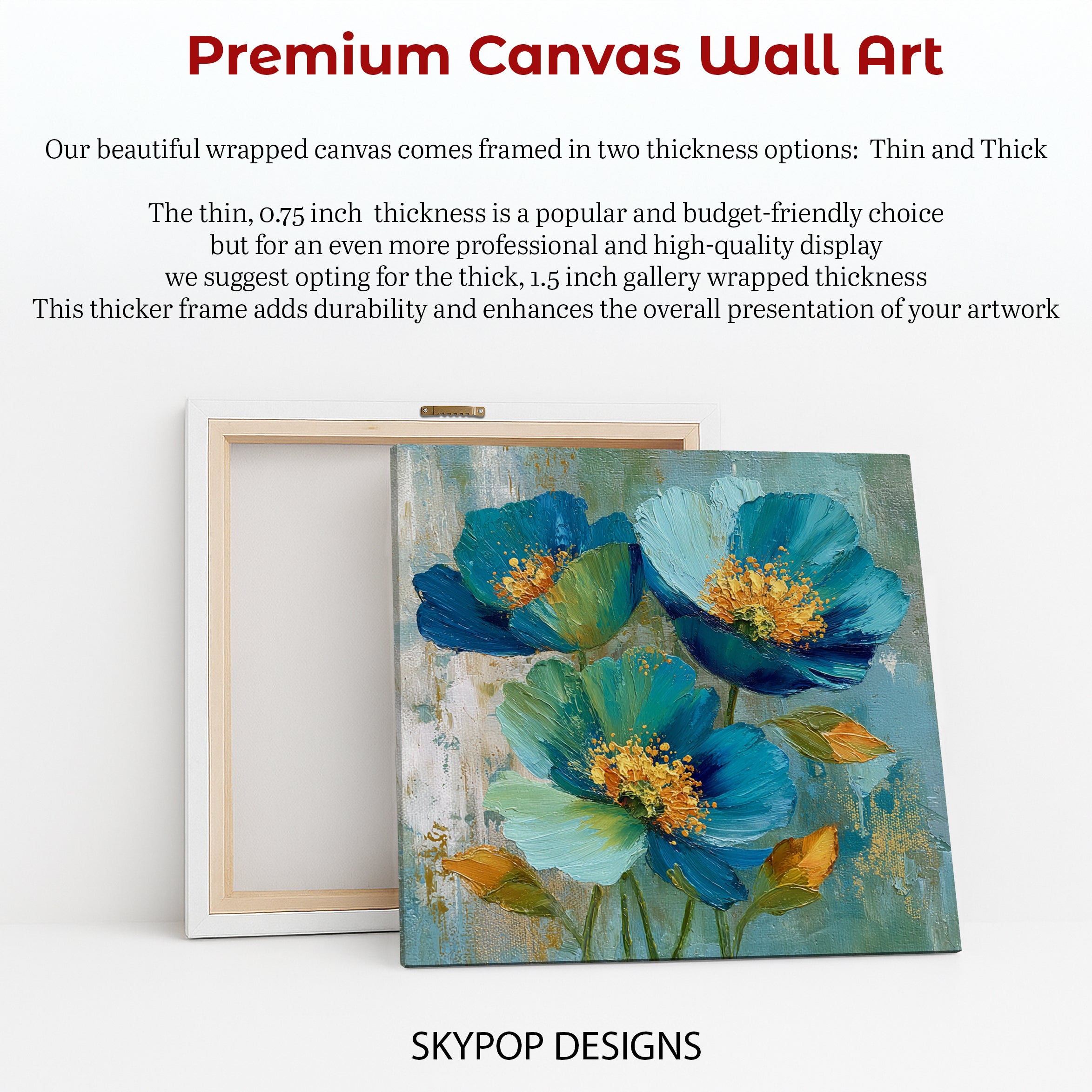 At SKYPOPDESIGNS, we specialize in high-quality canvas and poster prints designed to bring sophistication and style to your space. Please note that our designs are not created with 3D textures or as original oil, acrylic, or watercolor paintings; they are instead HD reproductions of original artwork. This approach allows us to offer these visually stunning pieces at competitive prices, ensuring you receive top-tier, maintenance-free art that's easy to enjoy.