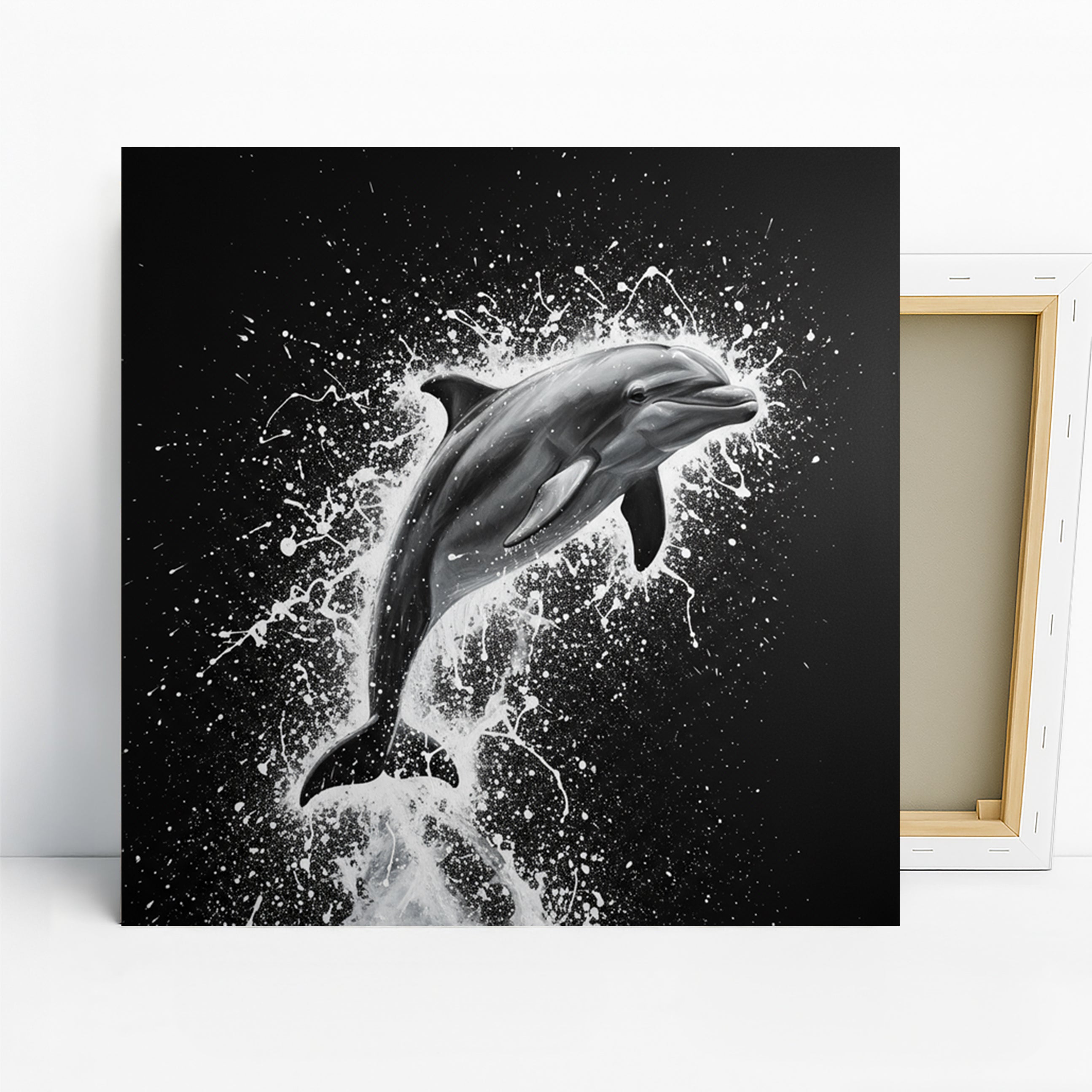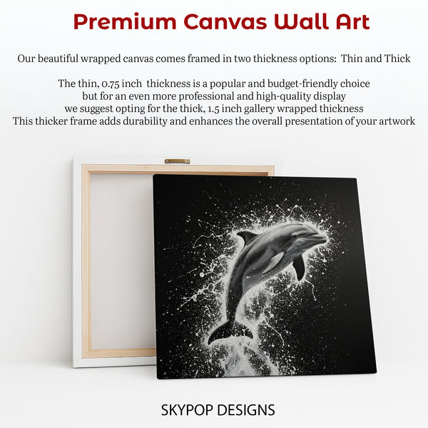 Keywords: Dolphin Canvas Art, Dolphin Wall Art, Animal Art, Nature Art, Contemporary Art, Modern Decor, Minimalist Decor, Coastal Decor, Black and White Art, White Art, Black Art, Living Room Art, Bathroom Art, Bedroom Art, Office Art, Dolphin Print, Ocean Art, Marine Life Art, Splash Art, Water Splash Art, Statement Wall Art, Home Decor, Wall Decor, Wall Hanging, Unique Gift, Ocean Lover Gift, Sophisticated Decor, Bold Art, High-Quality Art, Canvas Print