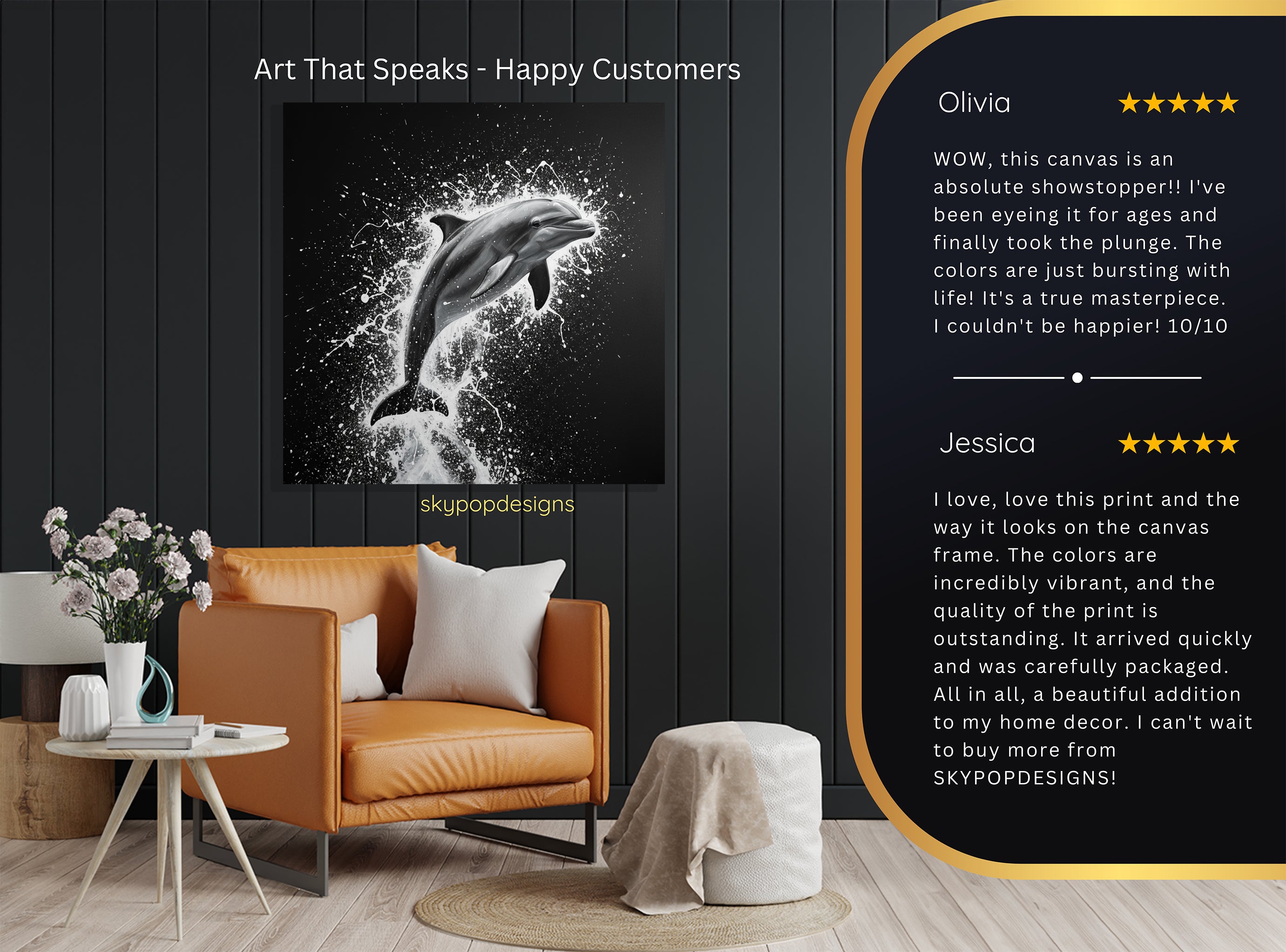 At SKYPOPDESIGNS, we specialize in high-quality canvas and poster prints designed to bring sophistication and style to your space. Please note that our designs are not created with 3D textures or as original oil, acrylic, or watercolor paintings; they are instead HD reproductions of original artwork. This approach allows us to offer these visually stunning pieces at competitive prices, ensuring you receive top-tier, maintenance-free art that's easy to enjoy.
