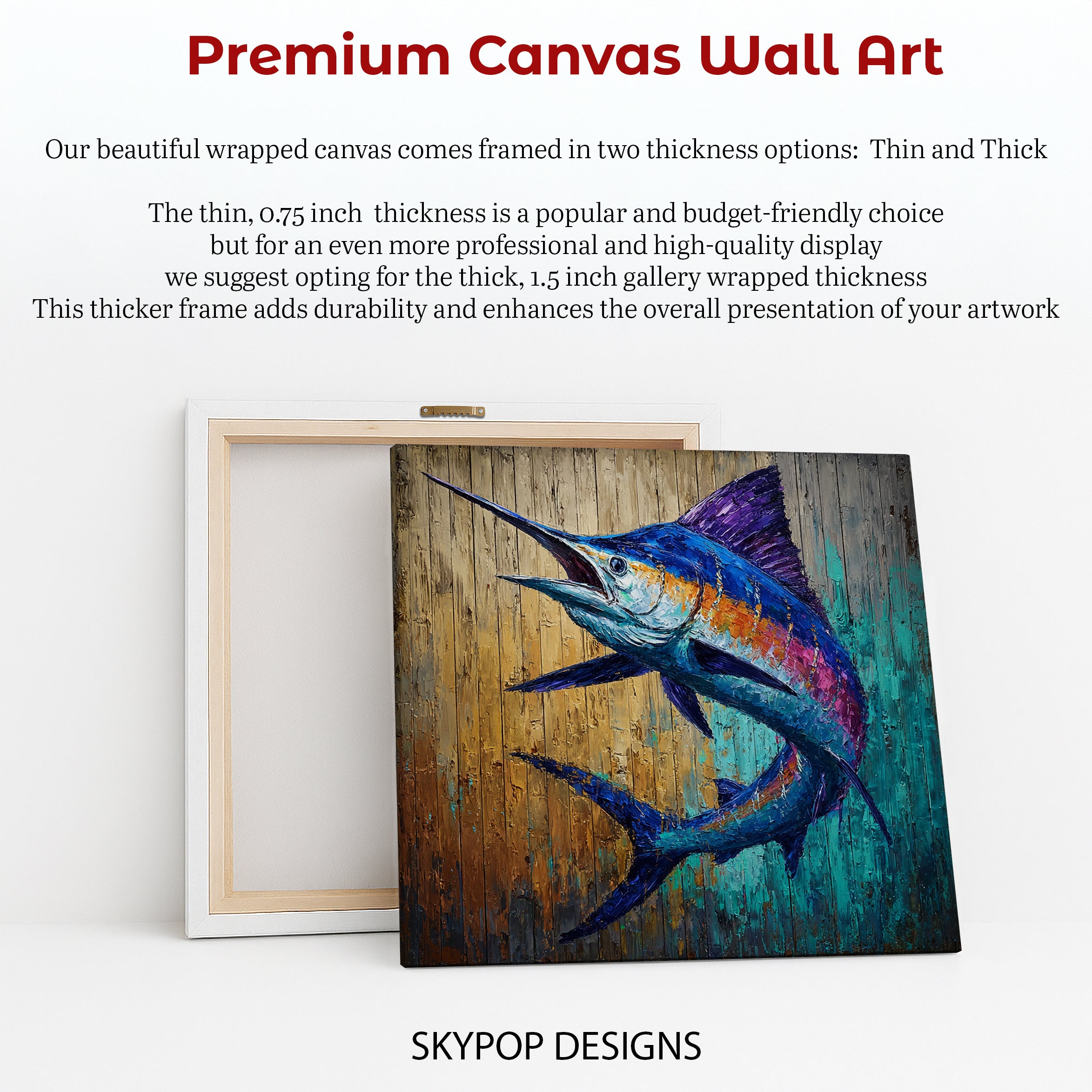 Keywords: Marlin Wall Art, Blue Marlin Art, Ocean Wall Decor, Animal Art, Nature Art, Coastal Decor, Modern Decor, Rustic Decor, Living Room Art, Office Decor, Game Room Art, Sports Den Decor, Blue Art, Teal Art, Gold Art, Multicolor Art, Fish Wall Art, Nautical Decor, Marine Life Art, Fish Art, Contemporary Art, Canvas Wall Art, Textured Art, Majestic Art, Fishing Gift, Angler Gift, Ocean Lover Gift, Home Decor, Statement Art, Bold Decor