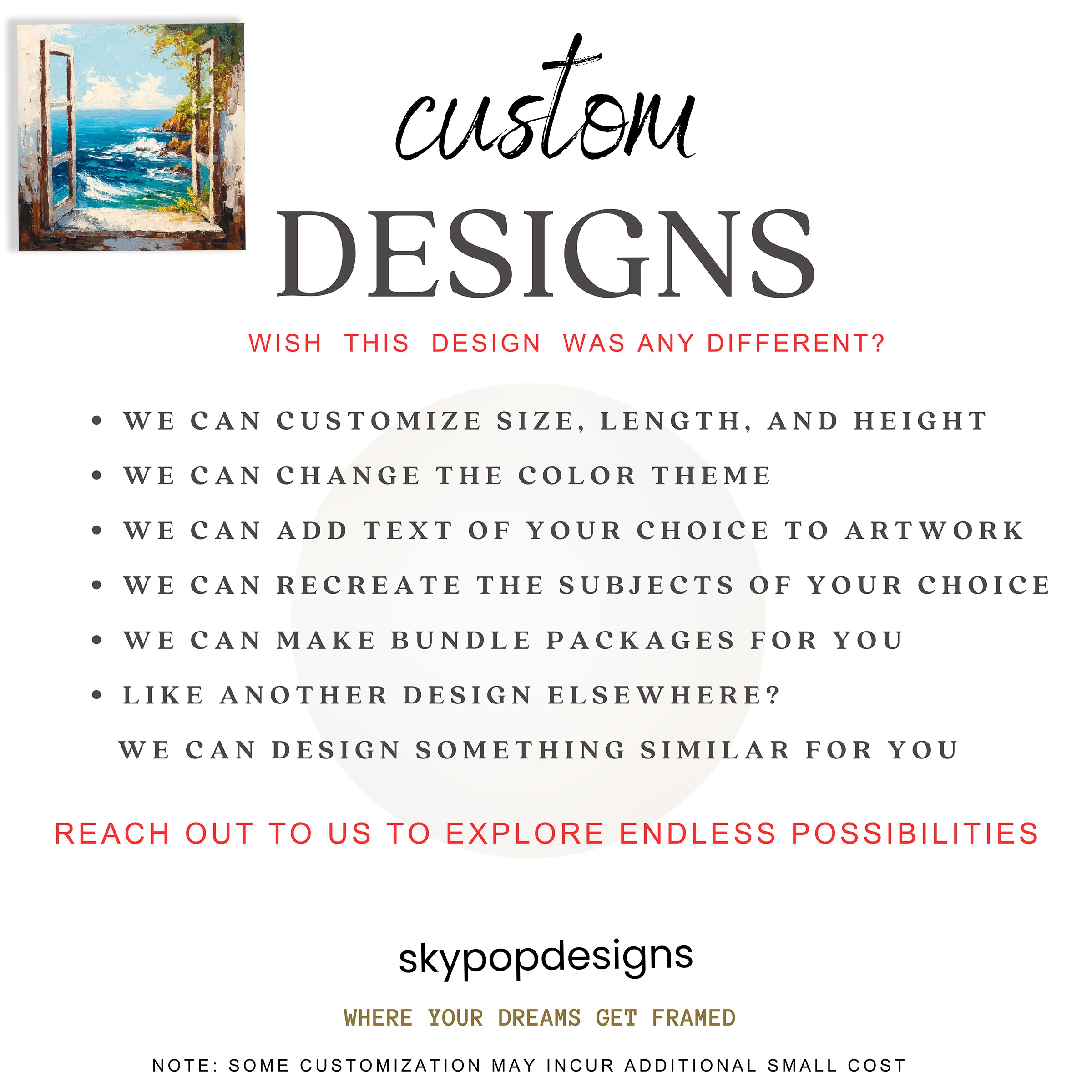 Looking for a custom design, or do you love a particular design but need it in a different size or orientation? Perhaps you've found a design elsewhere and wish for us to create something similar for you? Drop us a message! We're dedicated to meeting your needs and will work closely with you to ensure your vision comes to life.