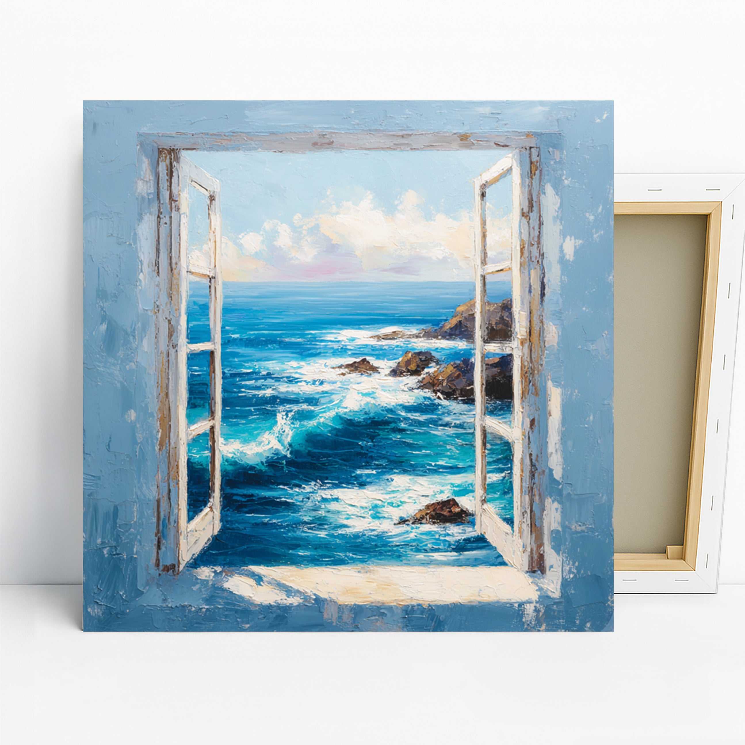 Keywords: Ocean View Window Art, Canvas Wall Art, Coastal Decor, Modern Art, Bohemian Decor, Living Room Art, Bedroom Art, Bathroom Art, Entryway Decor, Blue Wall Art, White Wall Art, Teal Wall Art, Multicolor Art, Impressionism Art, Nature Art, Classic Art, Seascape Art, Beach Inspired Decor, Home Decor, Wall Decor, Fine Art Prints, Interior Design, Relaxing Atmosphere, Tranquil Home, Coastal Living, Ocean Breeze Art, Gift for Home, Housewarming Gift, Birthday Gift, Holiday Gift